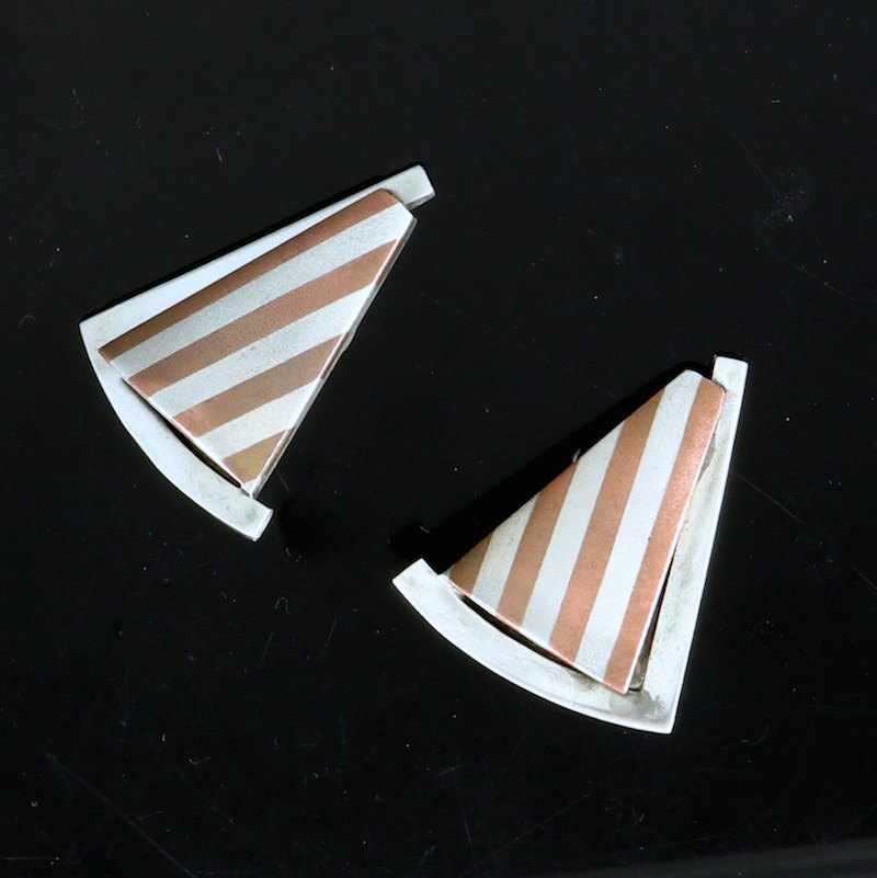 Claus Bjerring. Øreklips i sterling sølv og kobber.