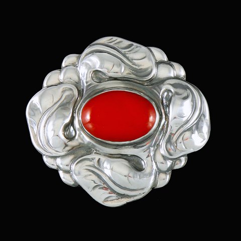 Thyra Vieth 1866-1938. Skønvirke Broche i Sølv med karneol.