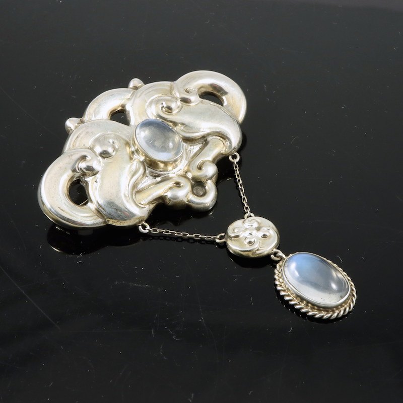 Grann & Laglye. Skønvirke Broche i sølv med månesten.