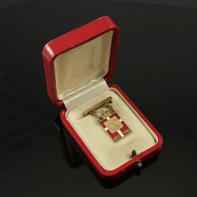 Georg Jensen Konge-emblem i 14k guld og rød emalje 1870-1940 - Arno Malinowski.