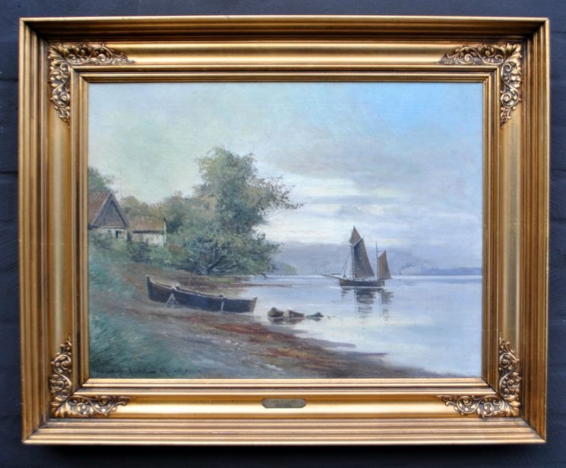 Lund, Carl Ove Julian (1857 - 1936) Danmark: Stranden ved Hellebæk. Olie på lærred. Signeret.: Carl O. J. Lund Hellebæk 07. 42,5 x 55,5 cm.