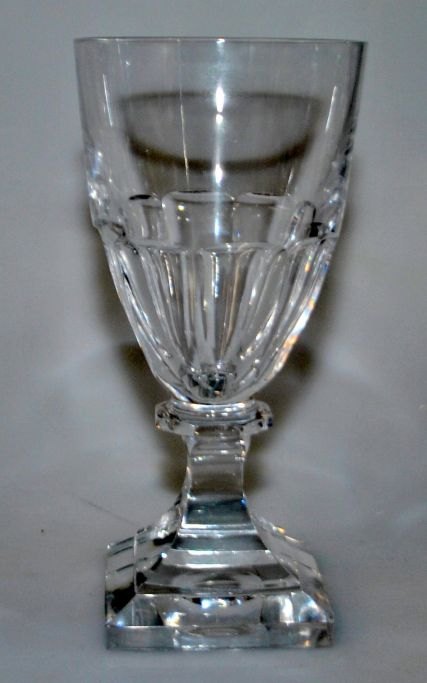 Service i krystal, 20 årh. Kvadratisk fod og kumme med flade slibninger. Muligvis Rusland.
