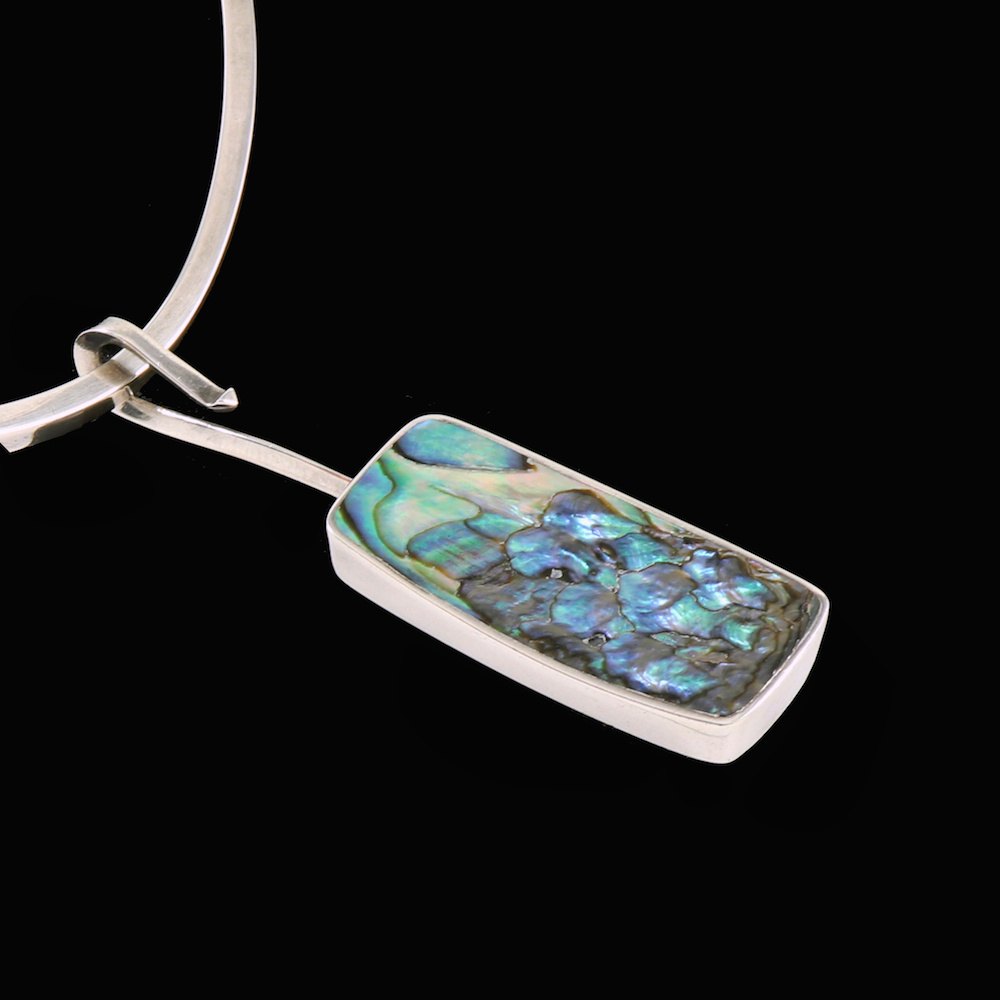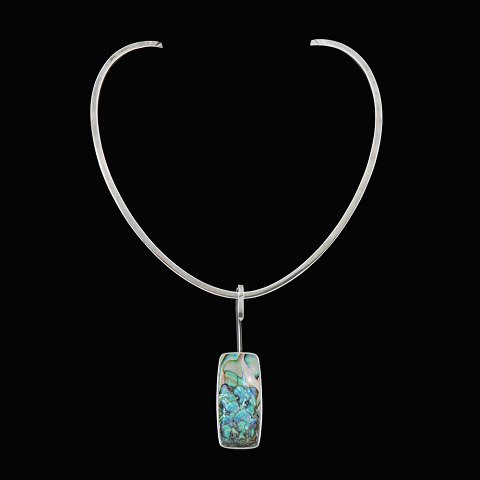 Palle Bisgaard - Denmark. Halsring #6 i sterlingsølv med Abelone Vedhæng#8. 1960erne