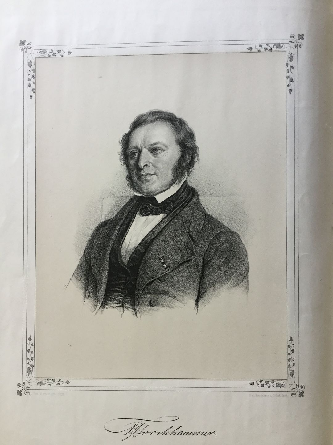 Portræt af Kemikeren Johan Georg Forchhammer - litografi af Em. Bærentzen ca. 1850.