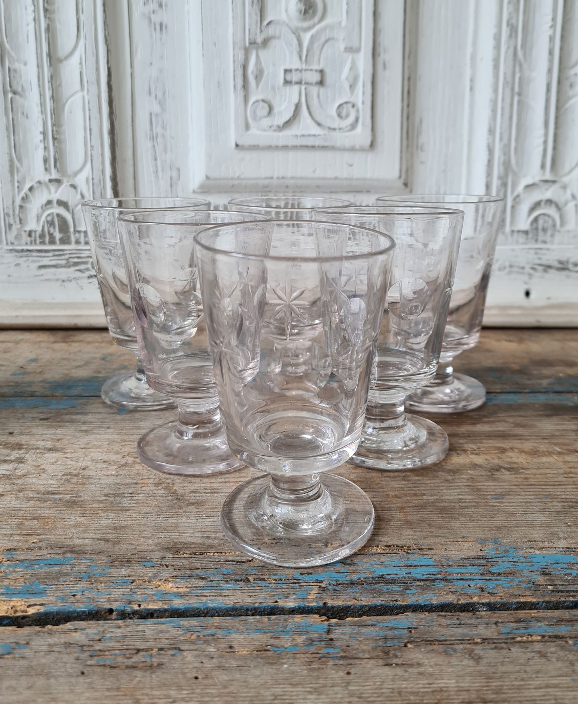 Mouth-blown toddy glass with moon and star approx. year 1900