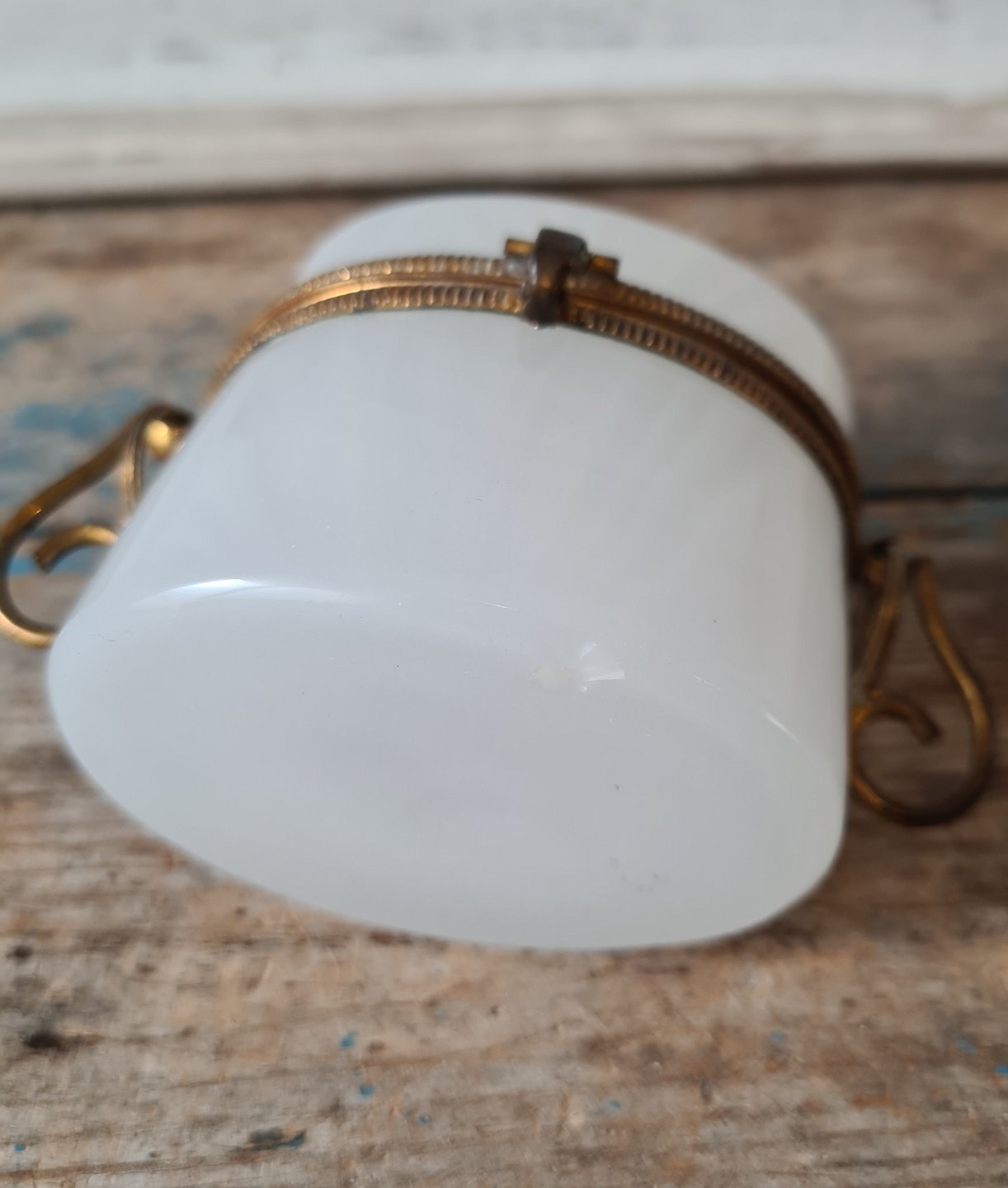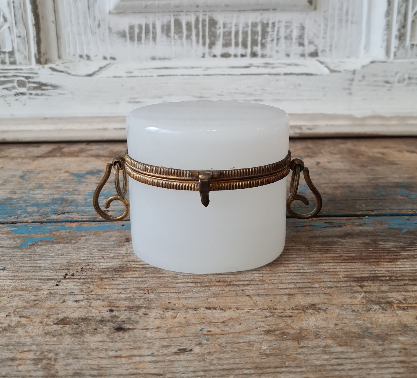 1800 tals kandisskrin i hvidt opalglas med forgyldt bronze montering - sjælden lille størrelse.