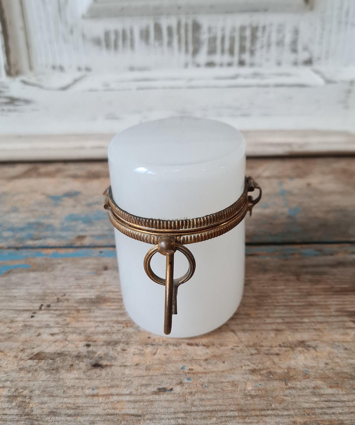 1800 tals kandisskrin i hvidt opalglas - sjælden lille størrelse