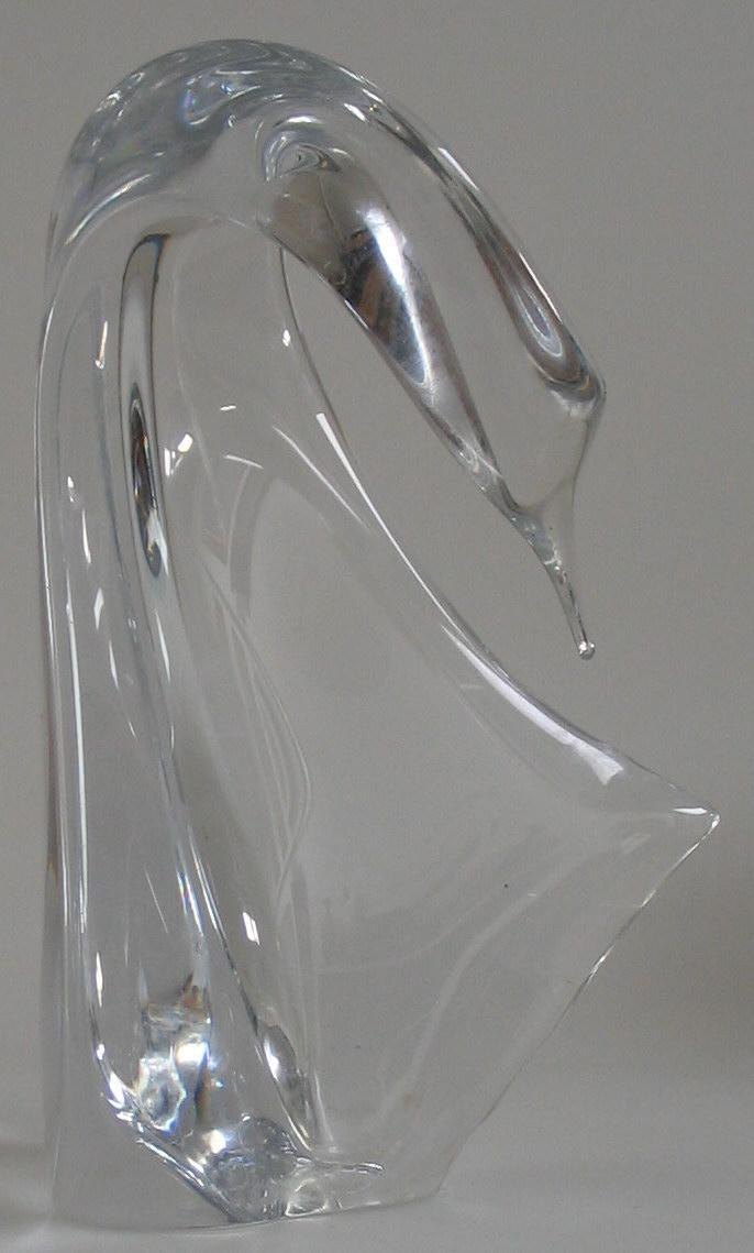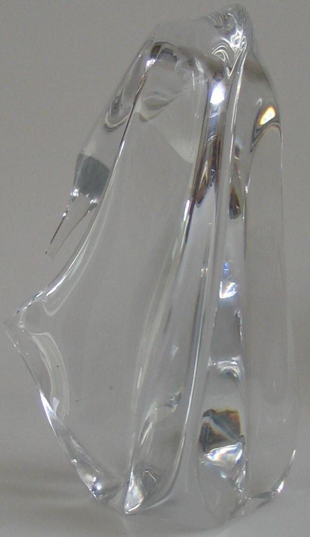 Glasfigur af stående pingvin, klart glas. Signeret.: Daum, France. 20. årh.