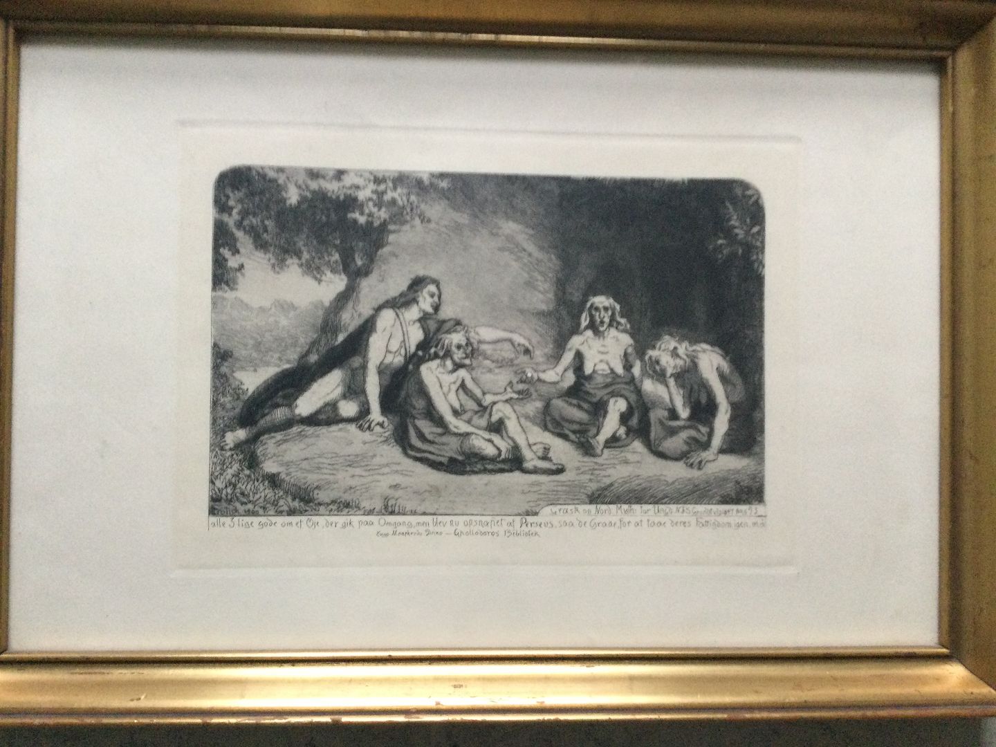 Stregætsning af Lorenz Frølich - De tre blinde og Perseus - 1900.