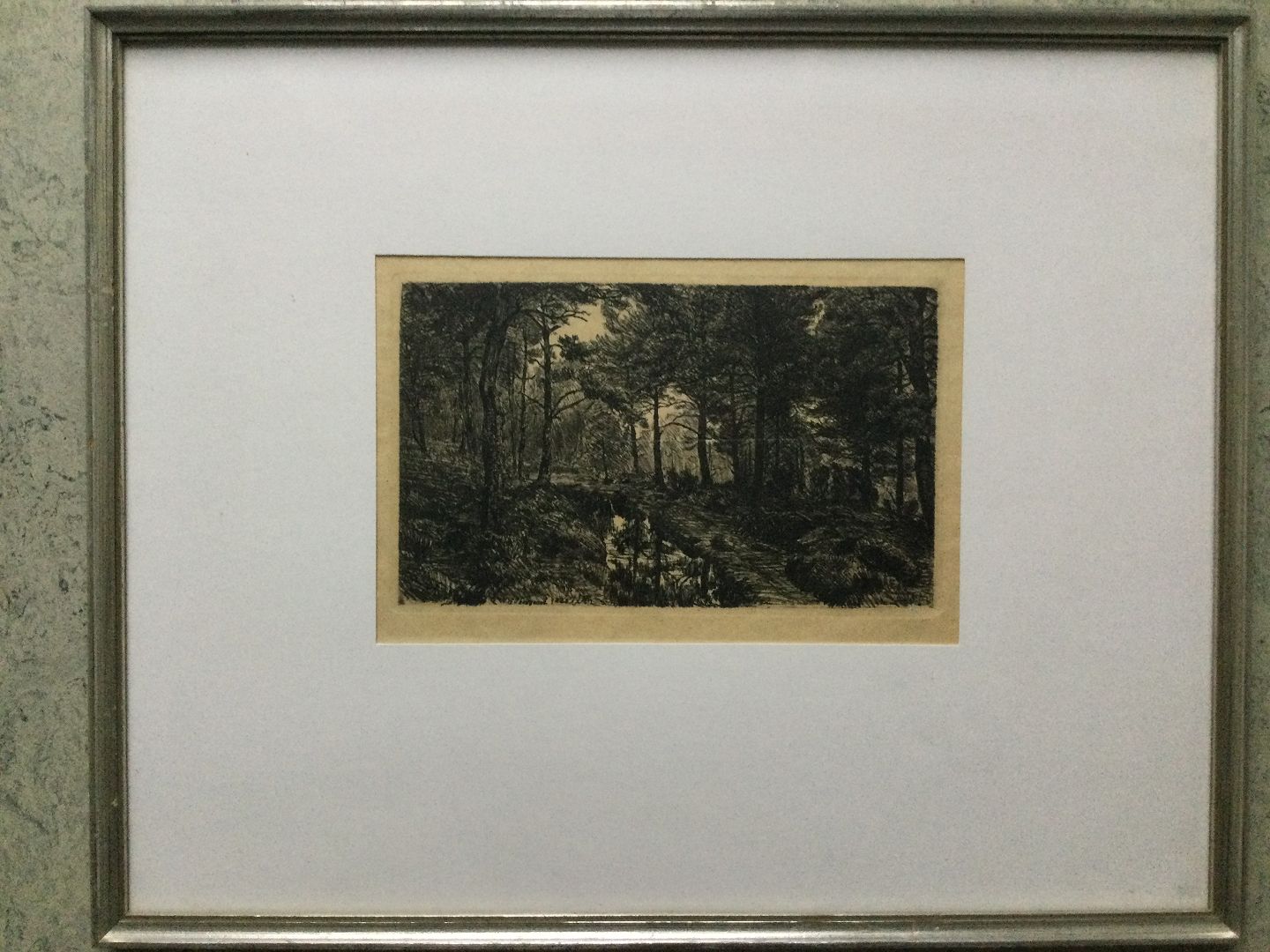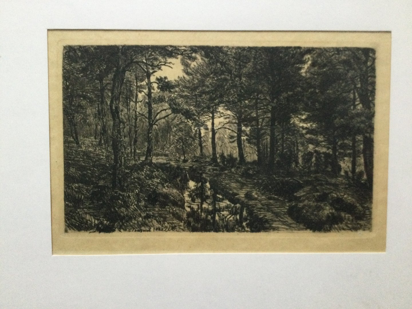 Radering af Niels Skovgaard 1885 - Oversvømmet vej i skov ved Österöö.
