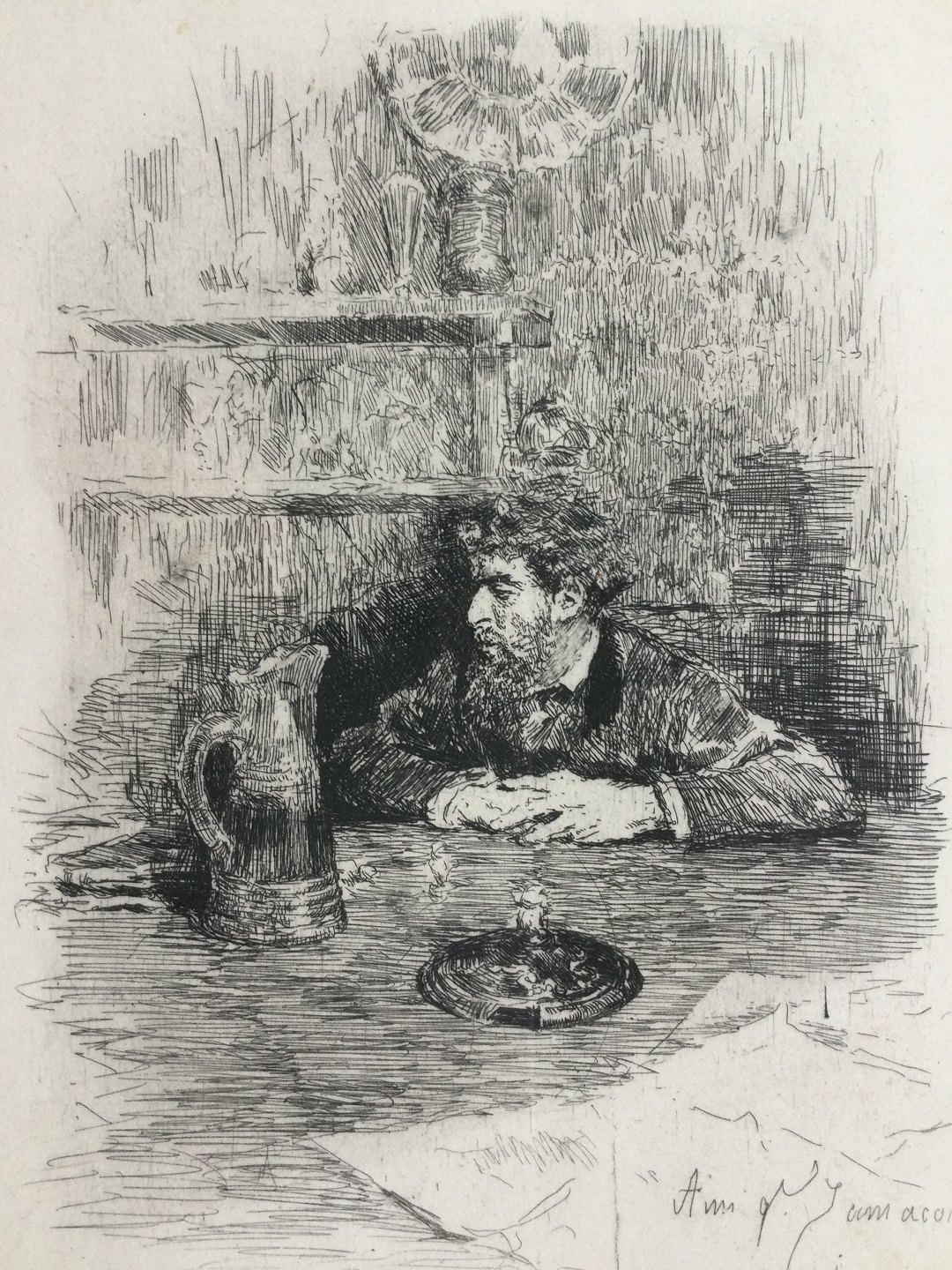 Radering af Mariano Fortuny y Marsal - Portræt af kunstmaleren Eduardo Zamacois y Zabala