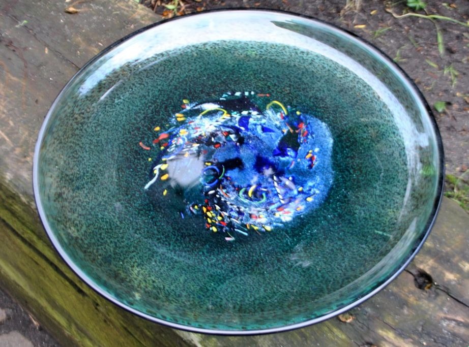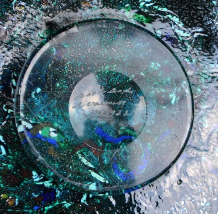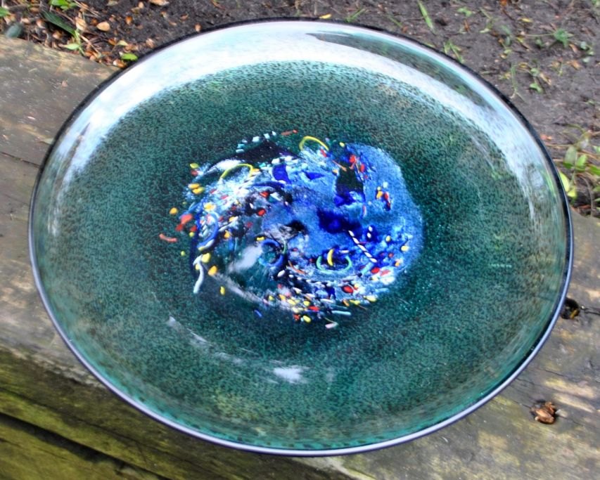Stor håndlavet Kosta Boda fad i flerfarvet glas, no.7079321, 20. årh. Sverige.