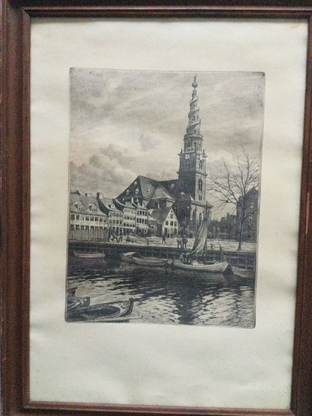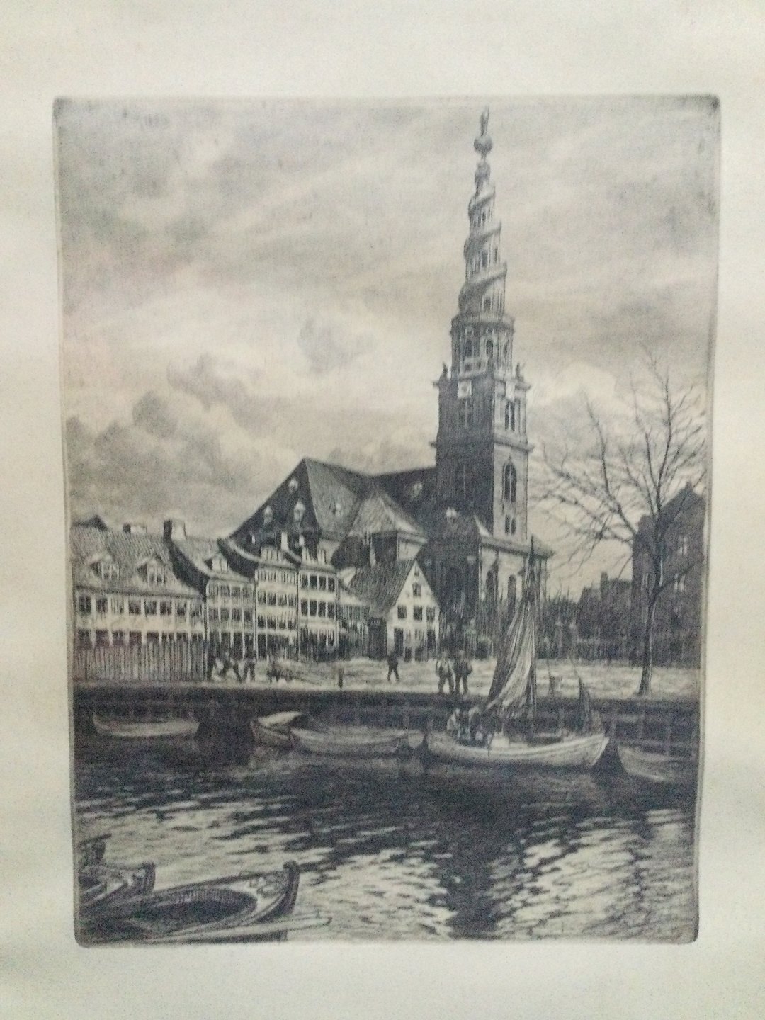 Text available in Danish: Radering af Emil Krause - Vor Frelsers Kirke, Christianshavn.