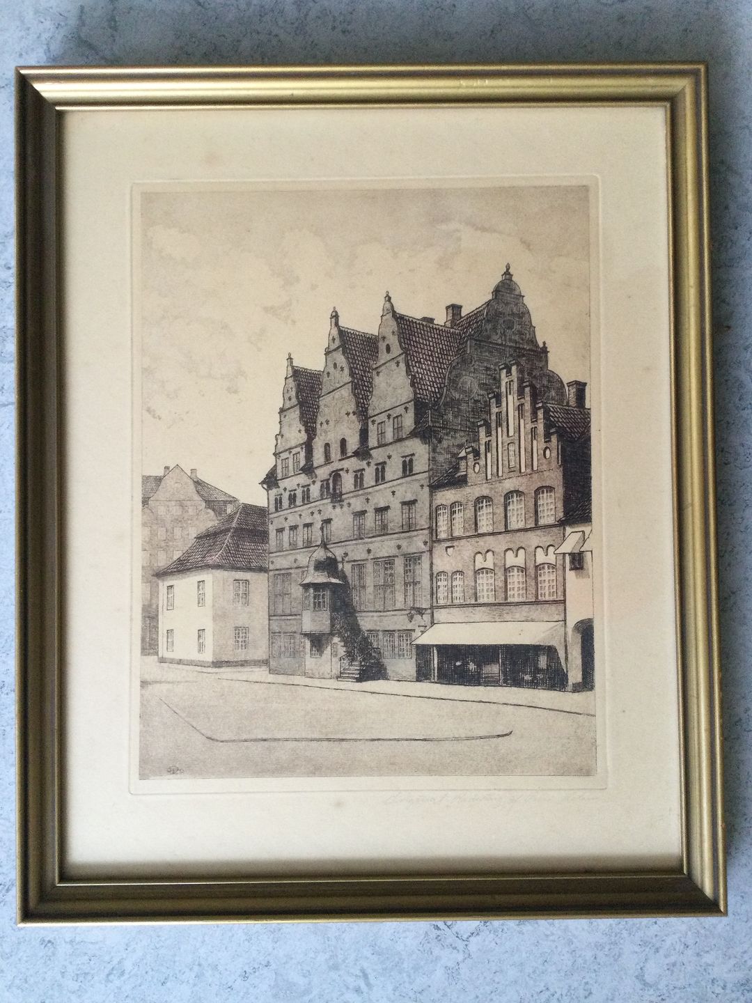 Radering af Peter Holm - Jens Bangs Stenhus, Østeraa, Aalborg