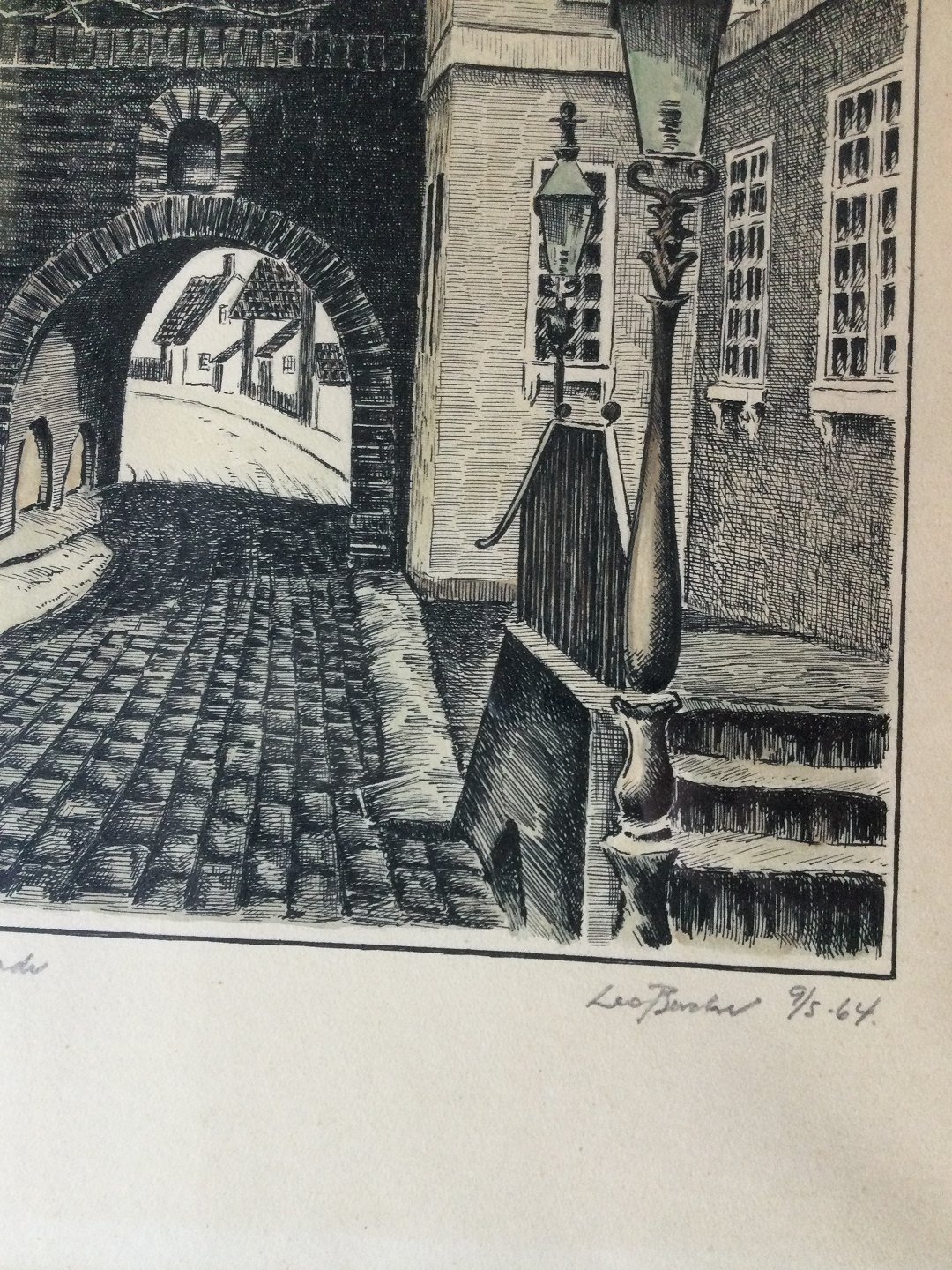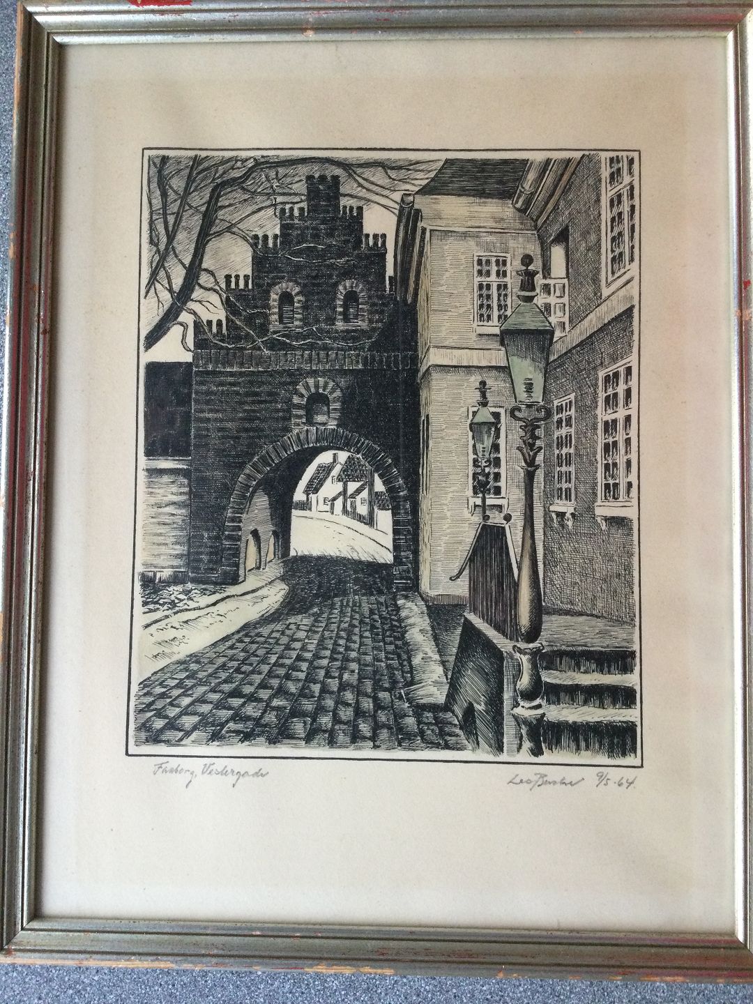 Radering af Leo Bache - Vesterport i Faaborg 1964.
