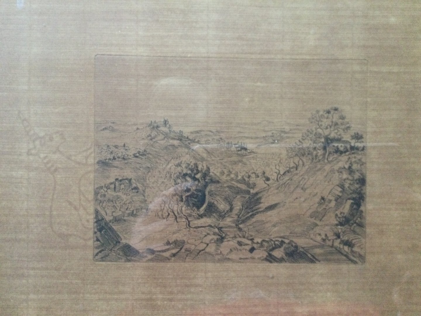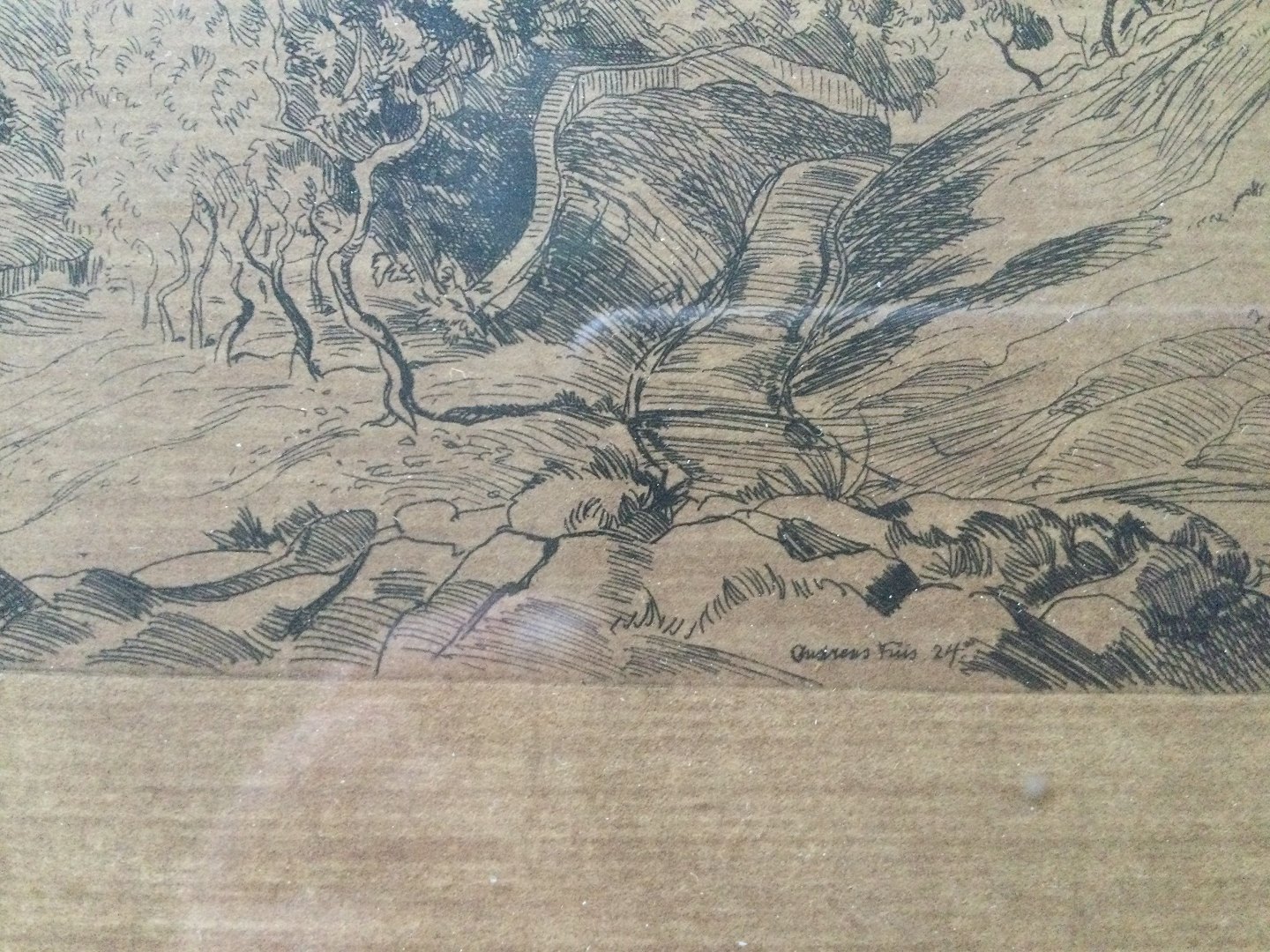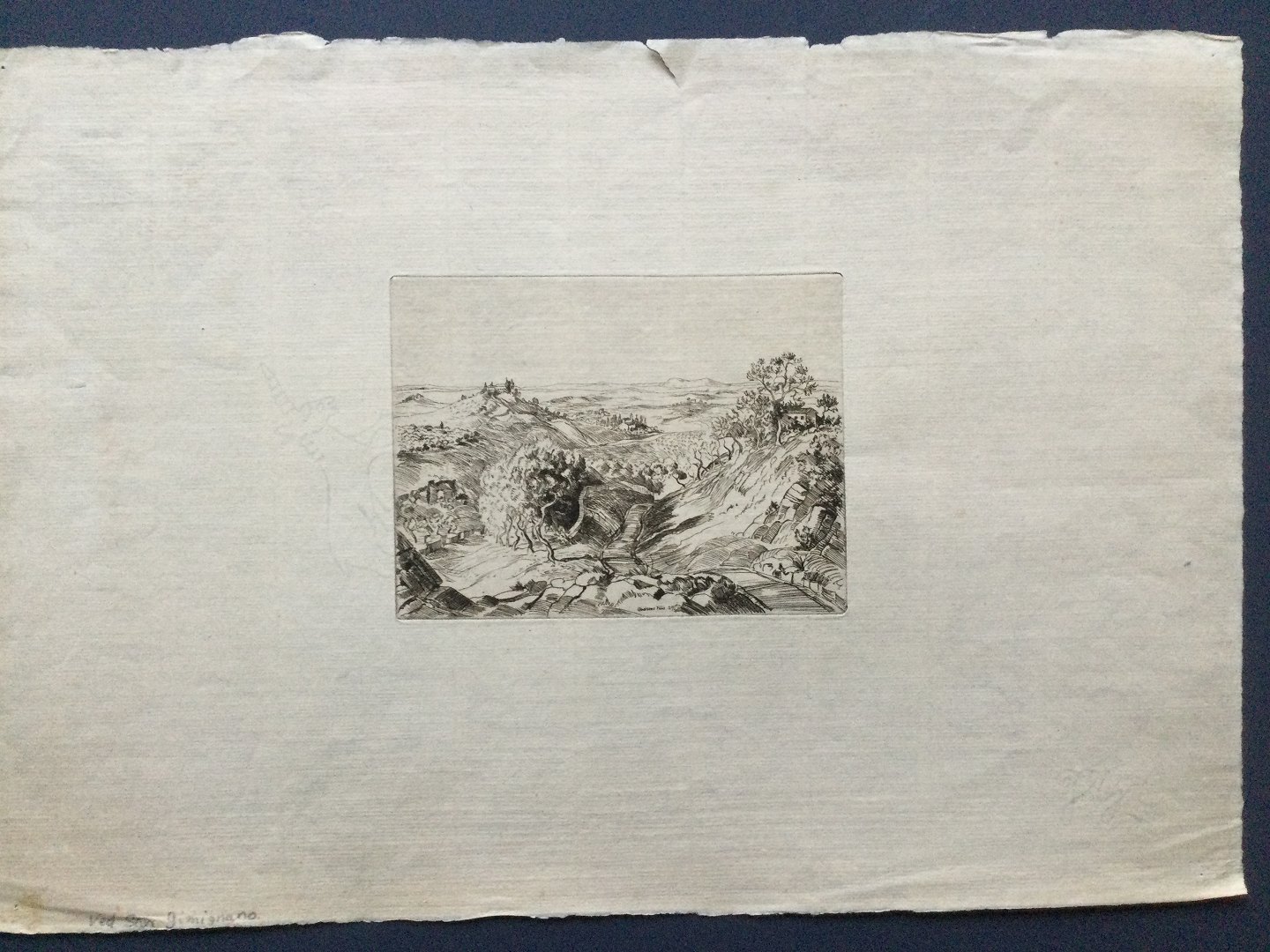 Radering af Andreas Friis 1924 - Hulvej ved den italienske by San Gimignano, Toscana.