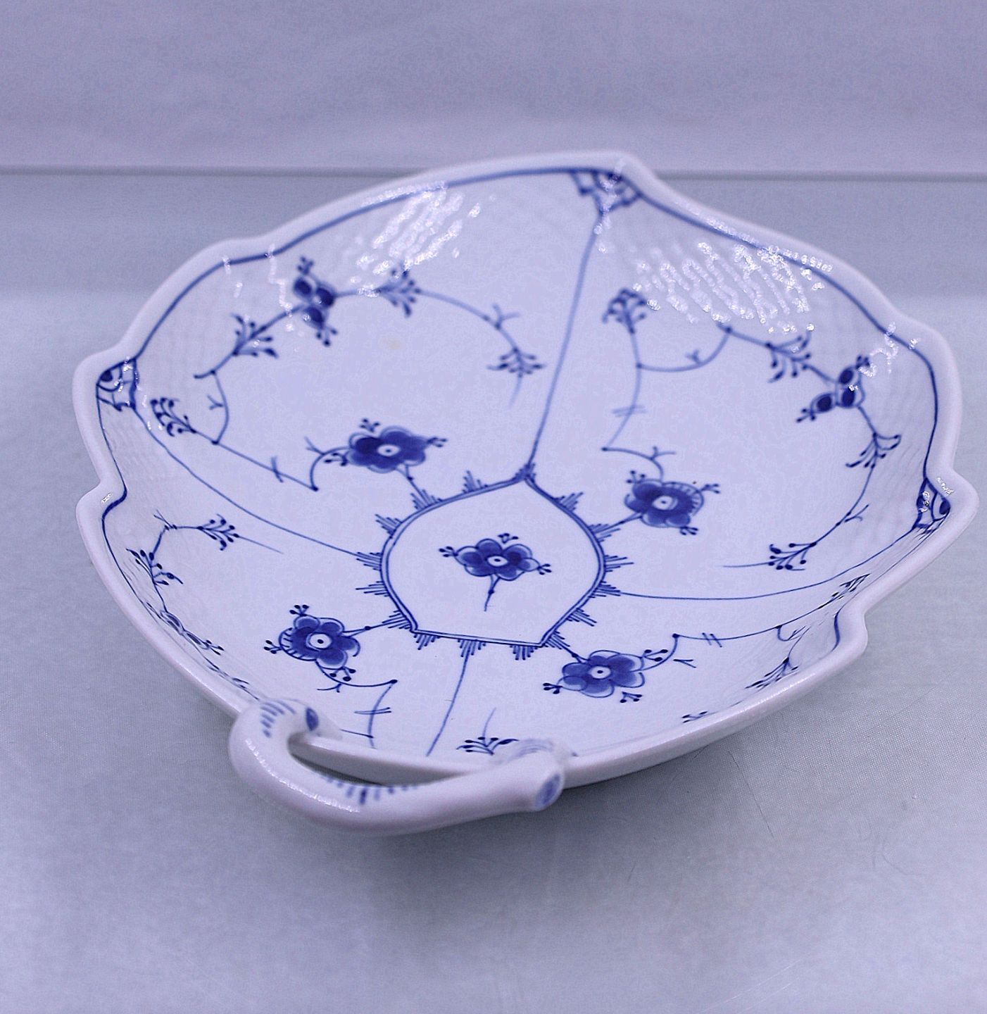 Bladformet fad f porcelæn fra stellet Blåmalet. Nr. 199.