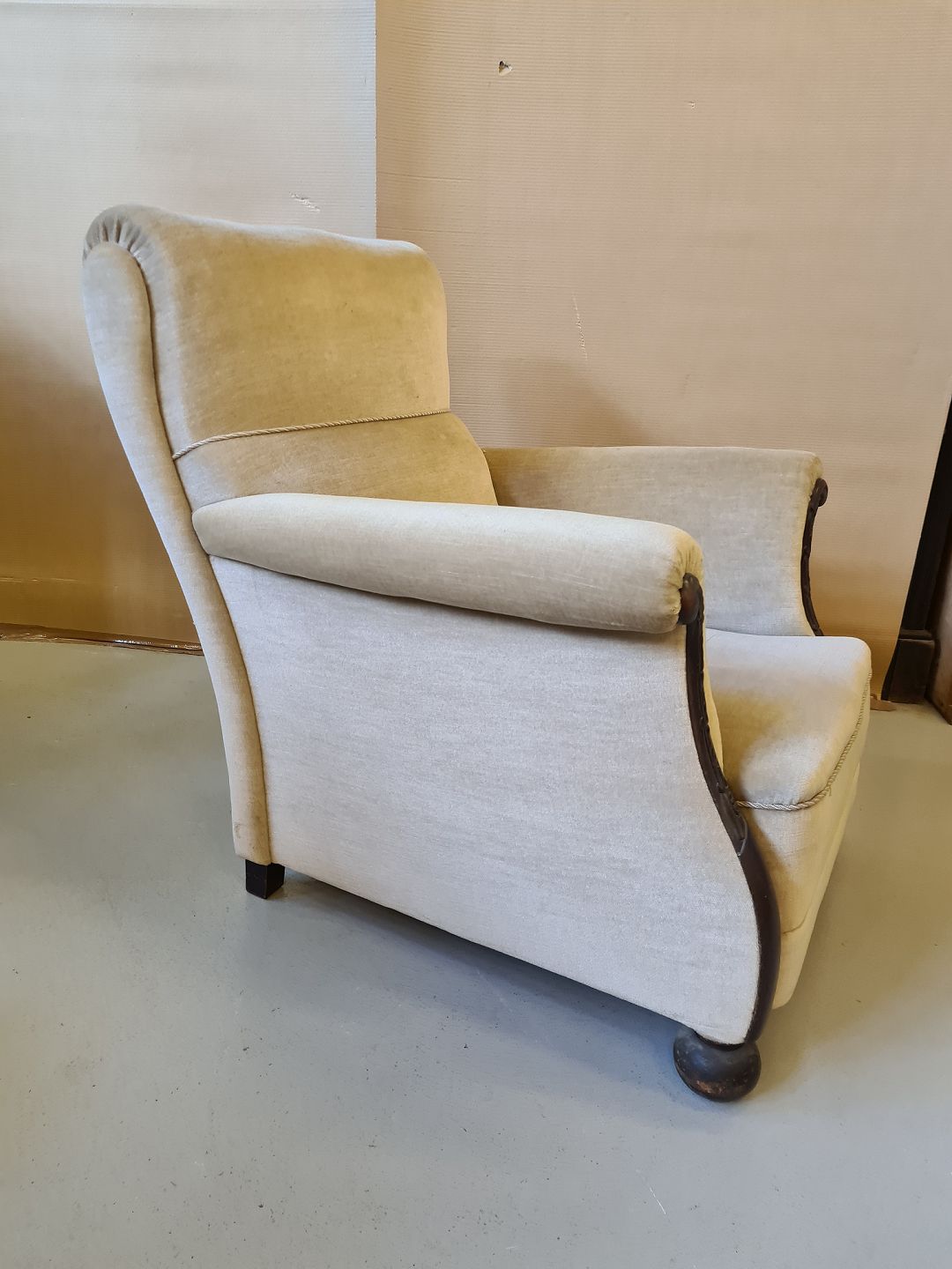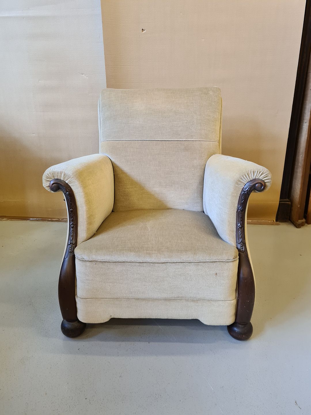 Lænestol med velur betræk fra 1930erne.