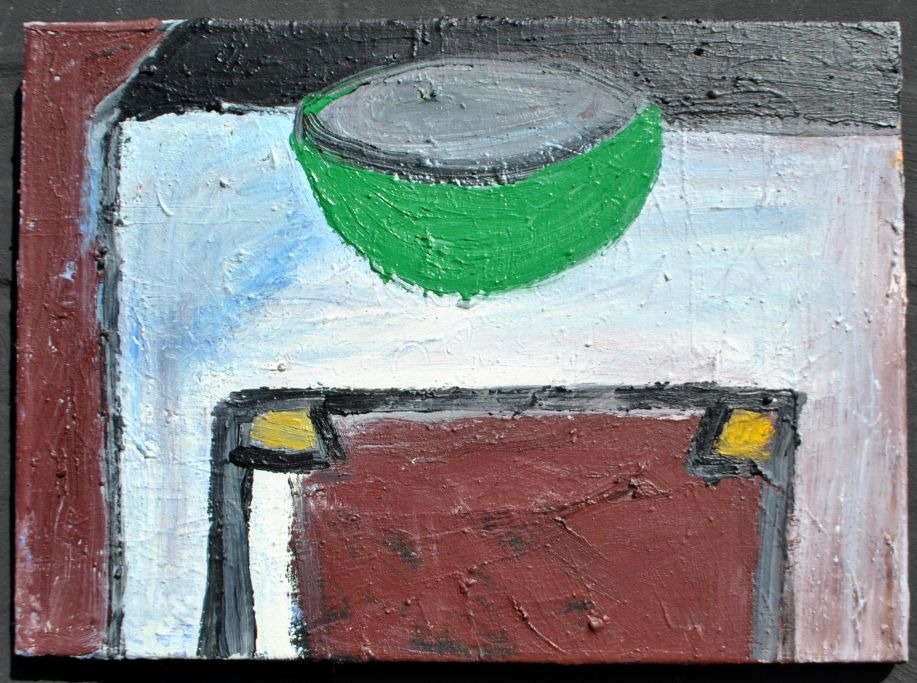 Kühl, Lena (1950 -) Danmark: Opstilling. Acryl på lærred. Verso signeret 2018. 38 x 53 cm.  Uindrammet.