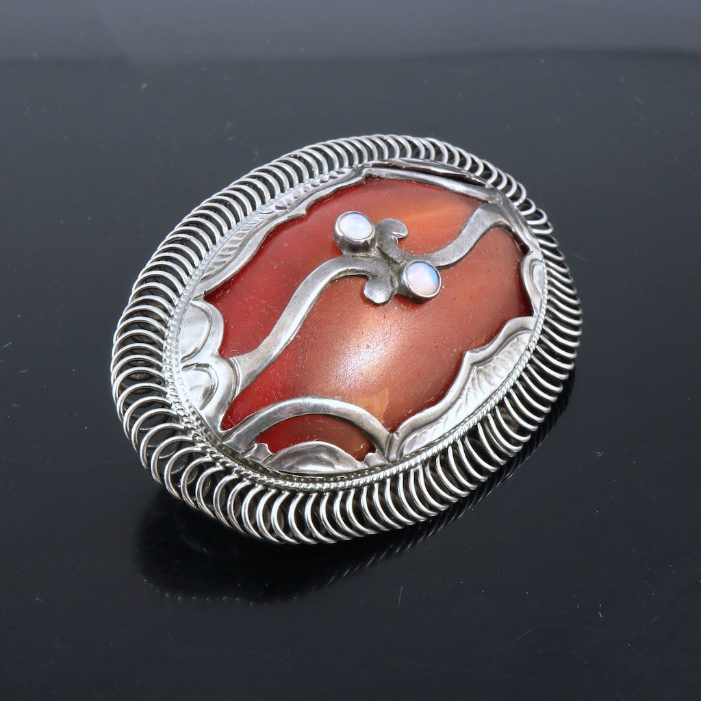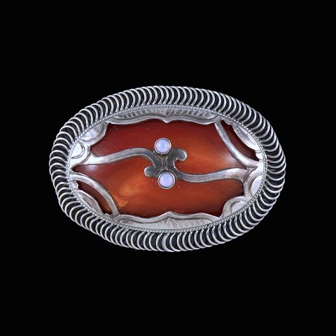 C.F. Andreasen - KBH. Skønvirke Broche i sølv med rav og opal.