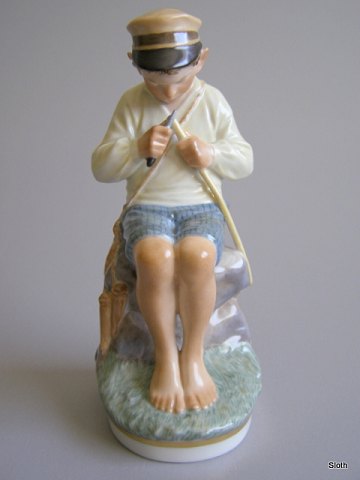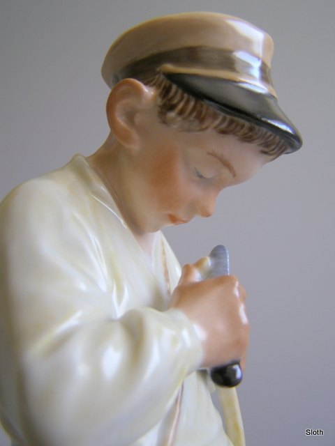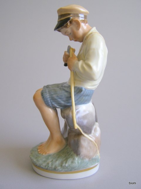 R.C. 1908 Snittende Hyrdedreng i overglasur, Chr. Thomsen Juliane Marie mærket 1. sort. H: 19 cm.