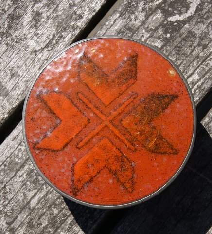 1 danske lav tinkrukke, låg beklædt med keramik kakkel.