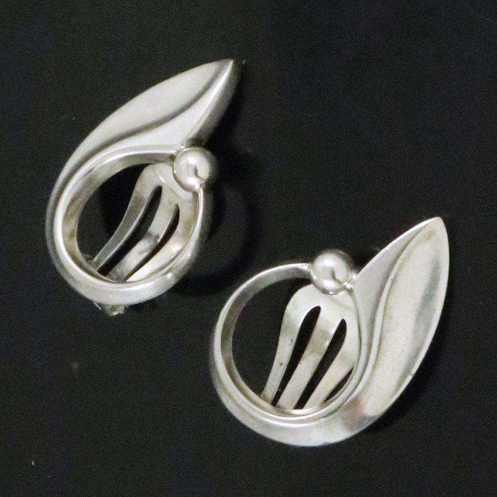 Hans Hansen. Øreklips i Sterling Sølv #422.