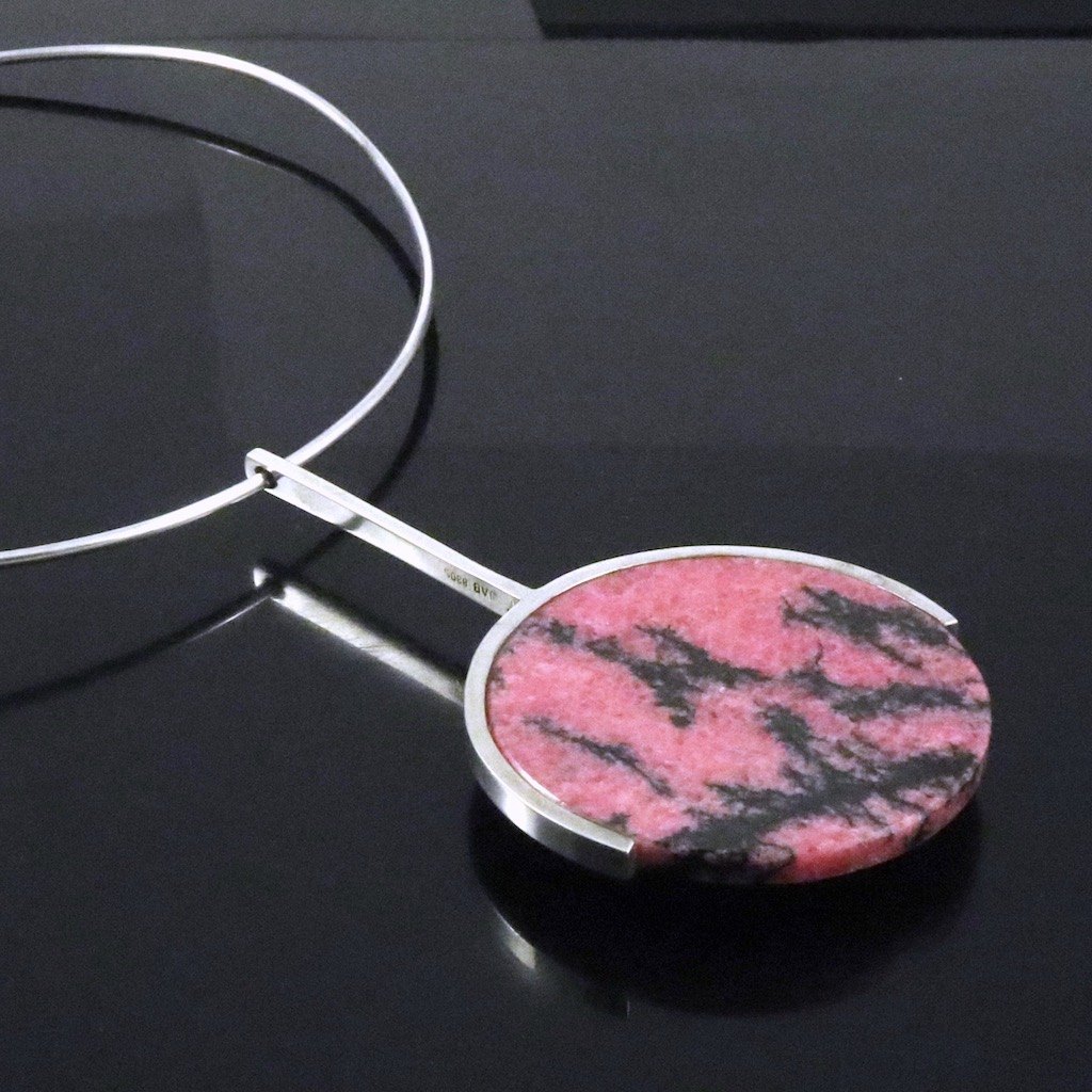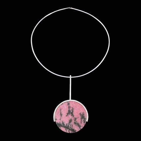 Jørn Arne Backhausen. Halsring i sølv med stort Rhodonit vedhæng. 1960erne