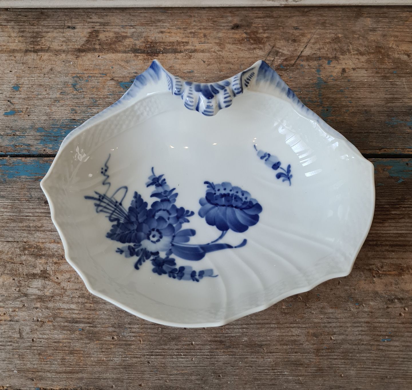 Royal Copenhagen Blå Blomst Svejfet muslingeformet asiet no. 1606