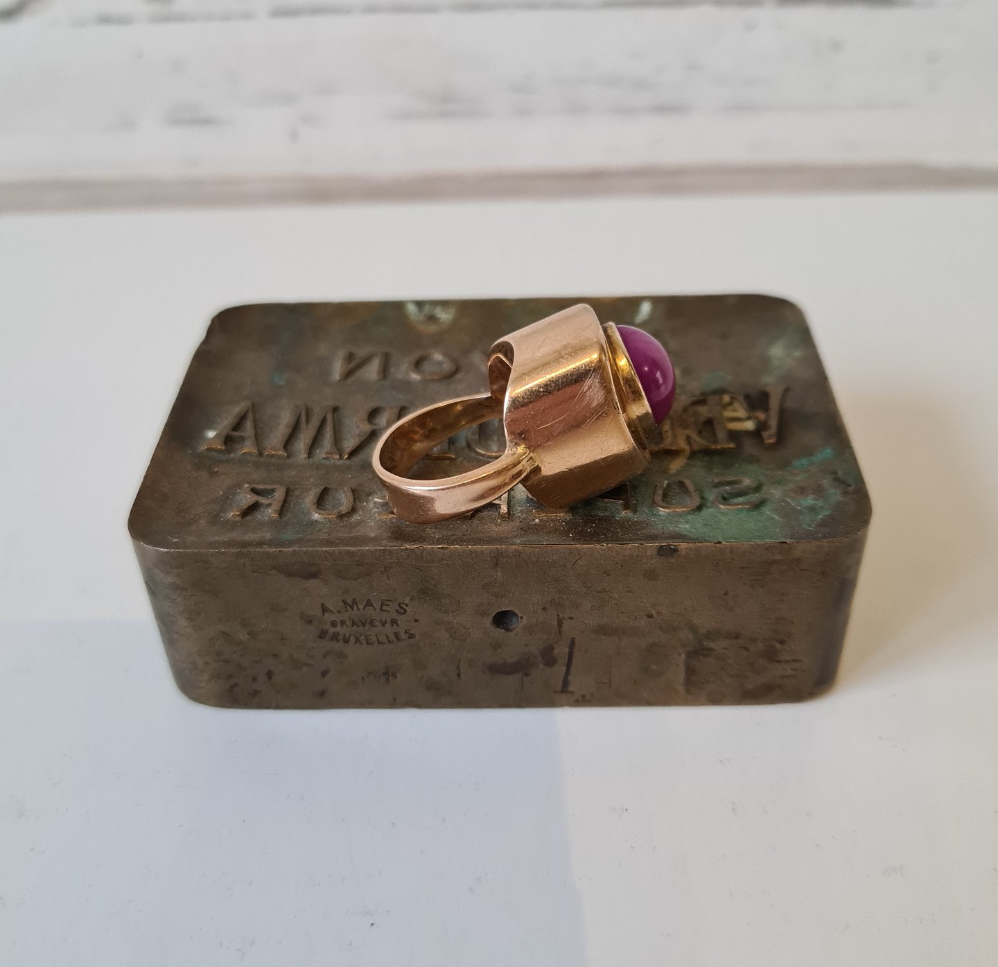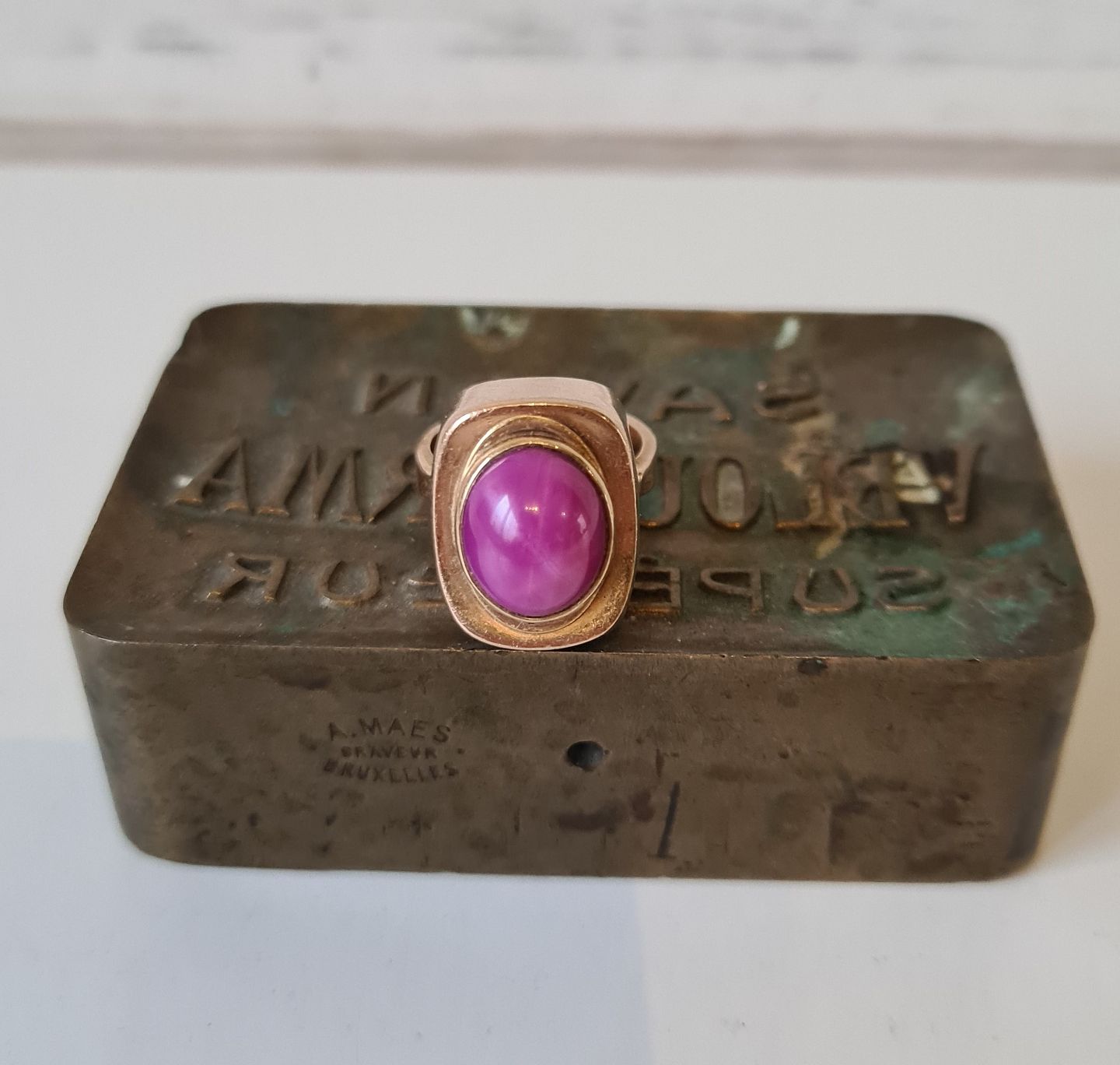 Bent Knudsen ring i 14 kt guld med smuk stjerne rubin