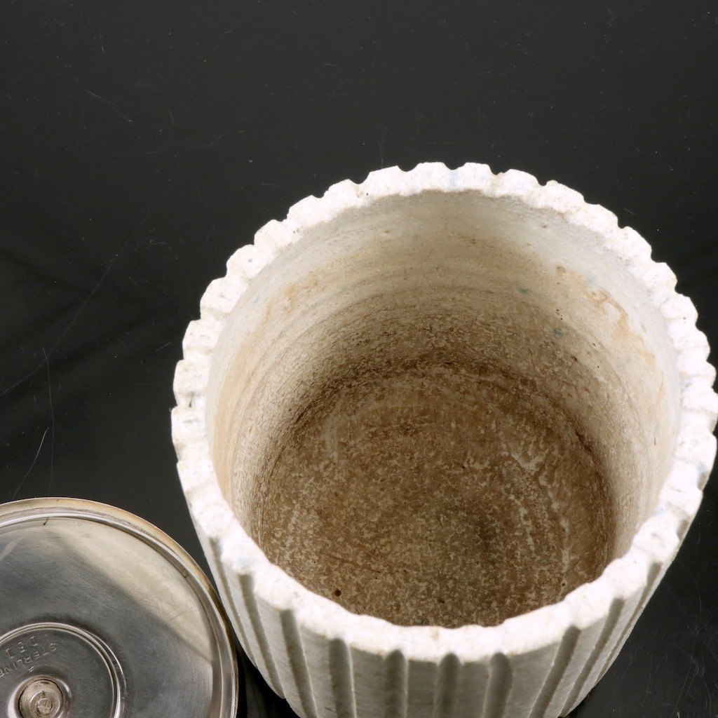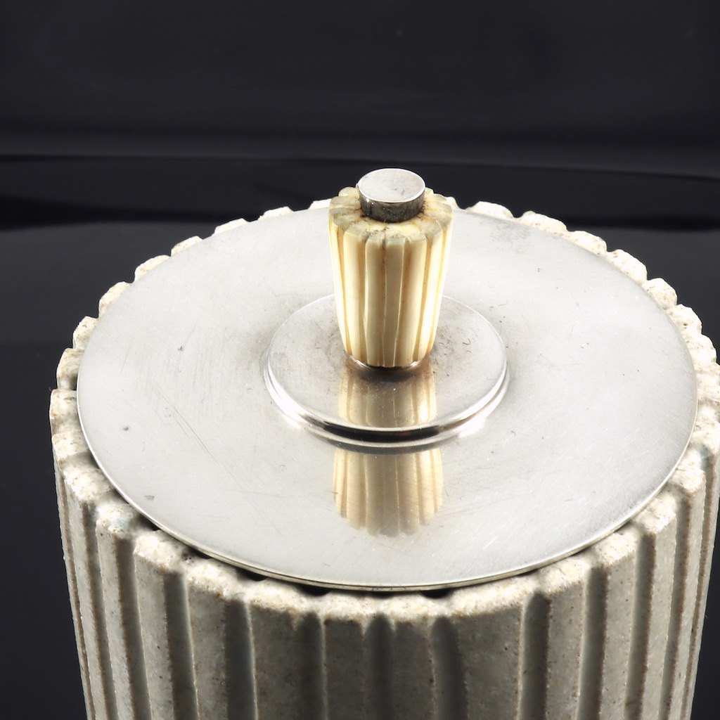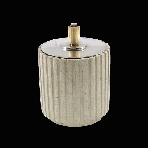 Arne Bang - C.C.Hermann. Krukke i stentøj med låg i sterlingsølv.