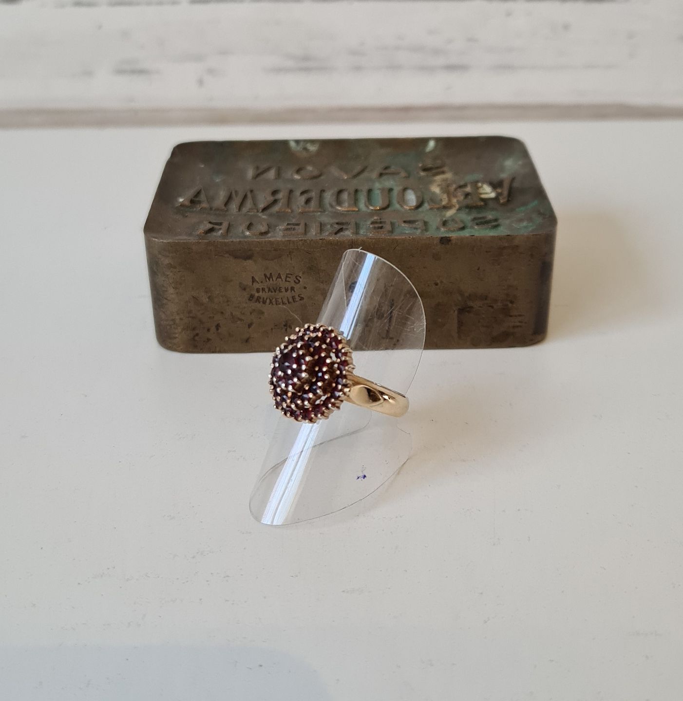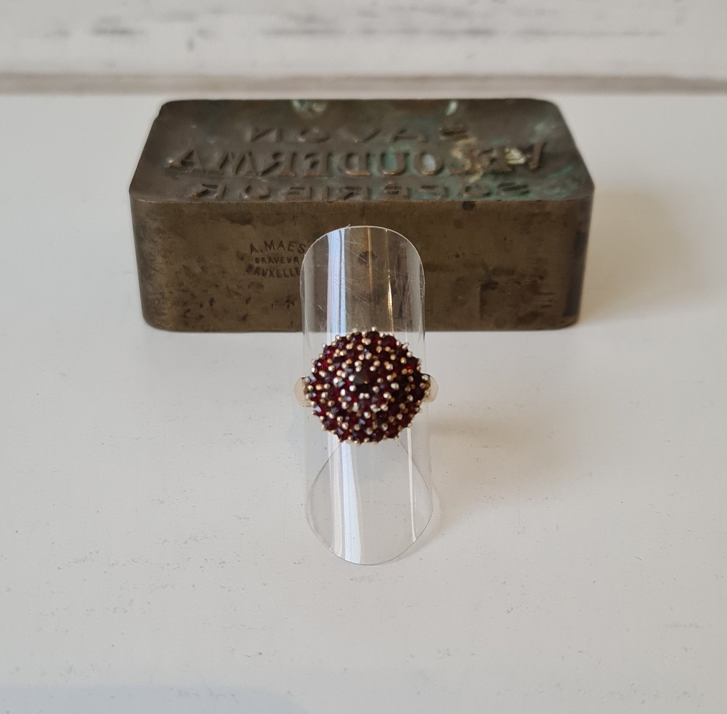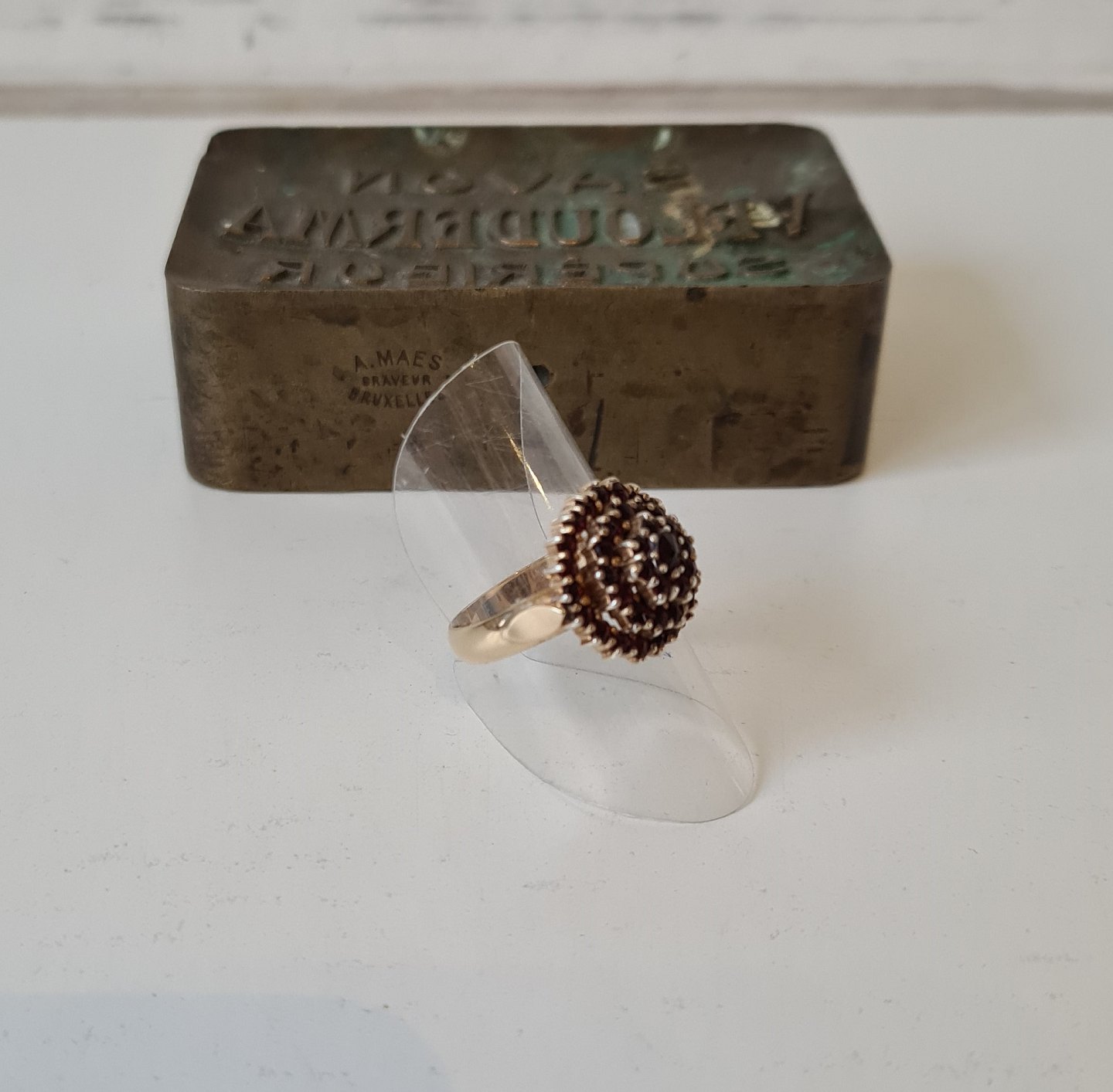 Vintage roset ring i 14 kt guld med talrige granater