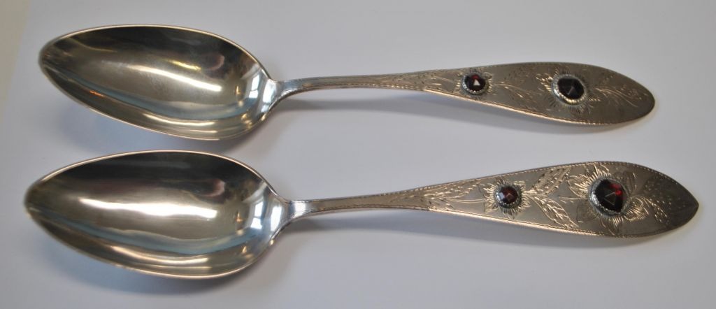 Et par antikke sølvsker med røde flusser, 1840, Holsten, Tyskland.