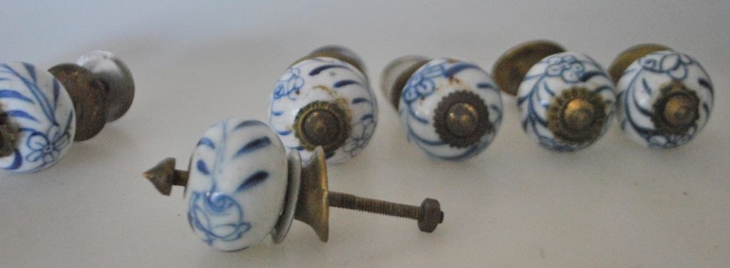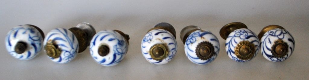 7 porcelæns håndtag, 19. årh. Tyskland. dia: 3,5 cm.