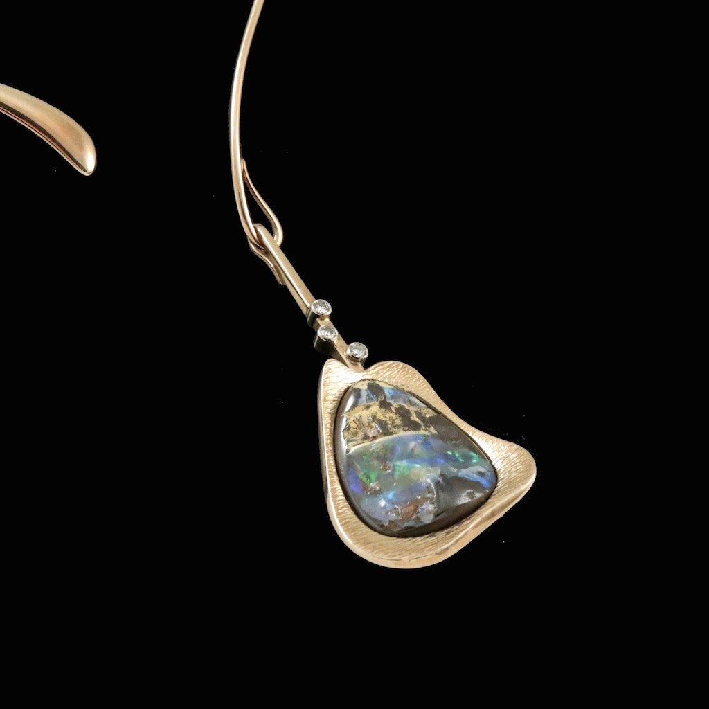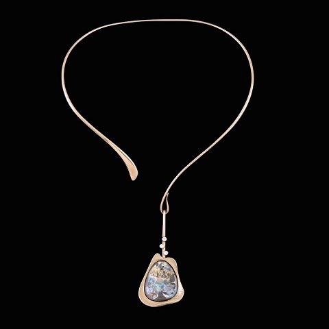 Bent Gabrielsen. Halsring i 14k guld med opal og diamanter 0,09ct #U49