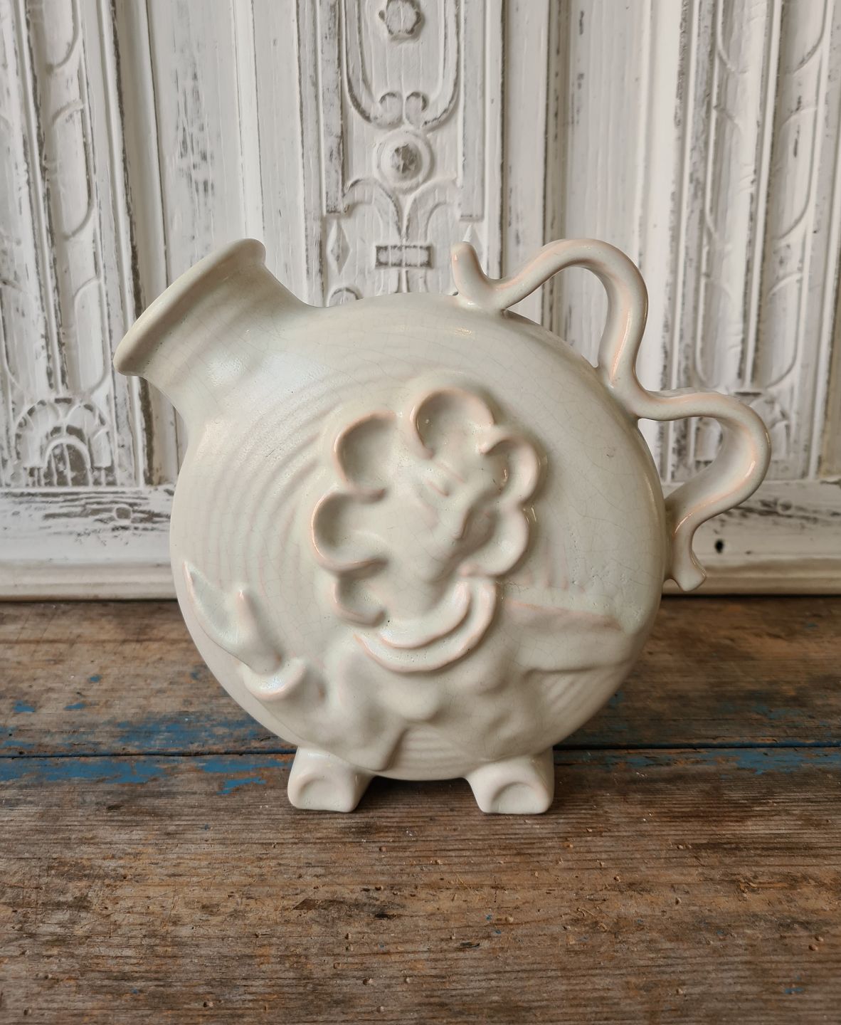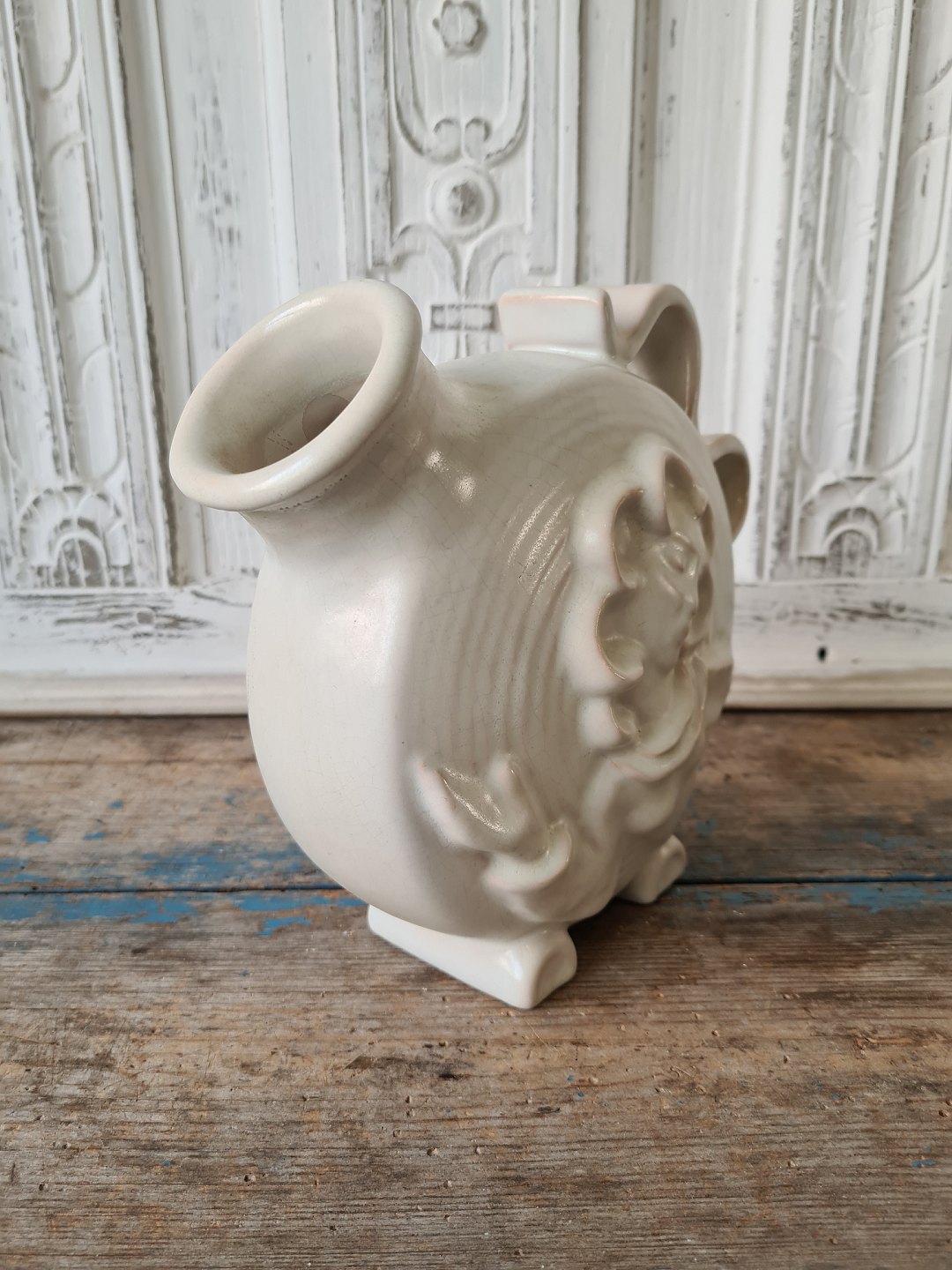 Michael Andersen cremefarvet keramik kande dekoreret med kvinde i relief.