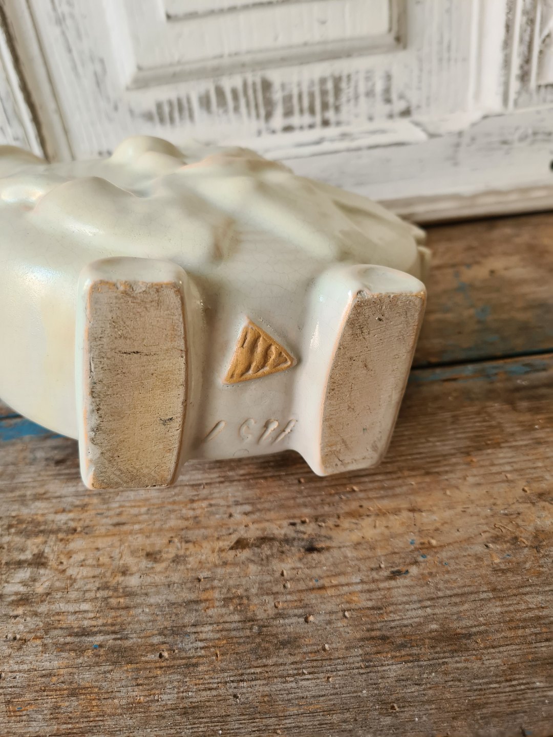 Michael Andersen cremefarvet keramik kande dekoreret med kvinde i relief