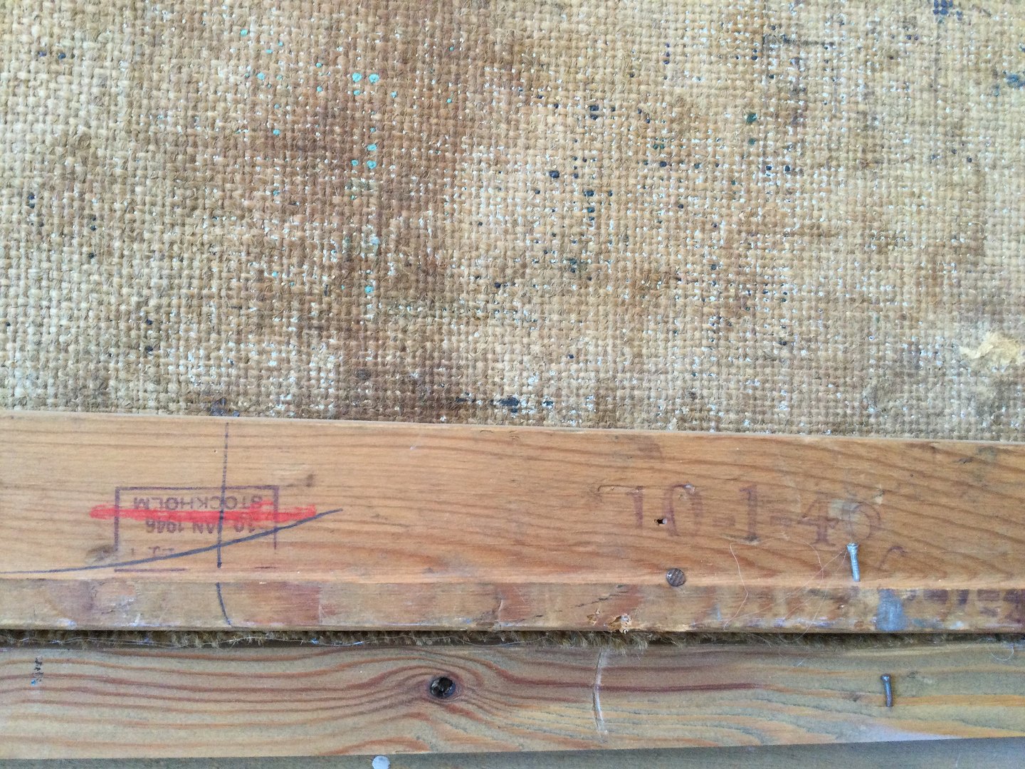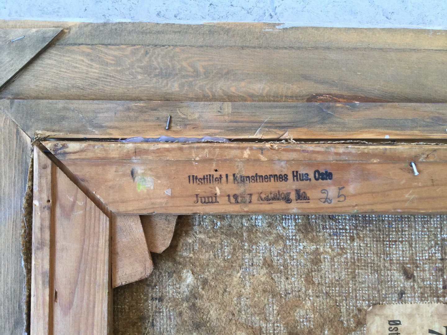 Bagpå stempel 10/1 1945, Stockholm 19/1 1946 samt Udstilling i Kunstnernes Hus i Oslo 1957 nr. 25.