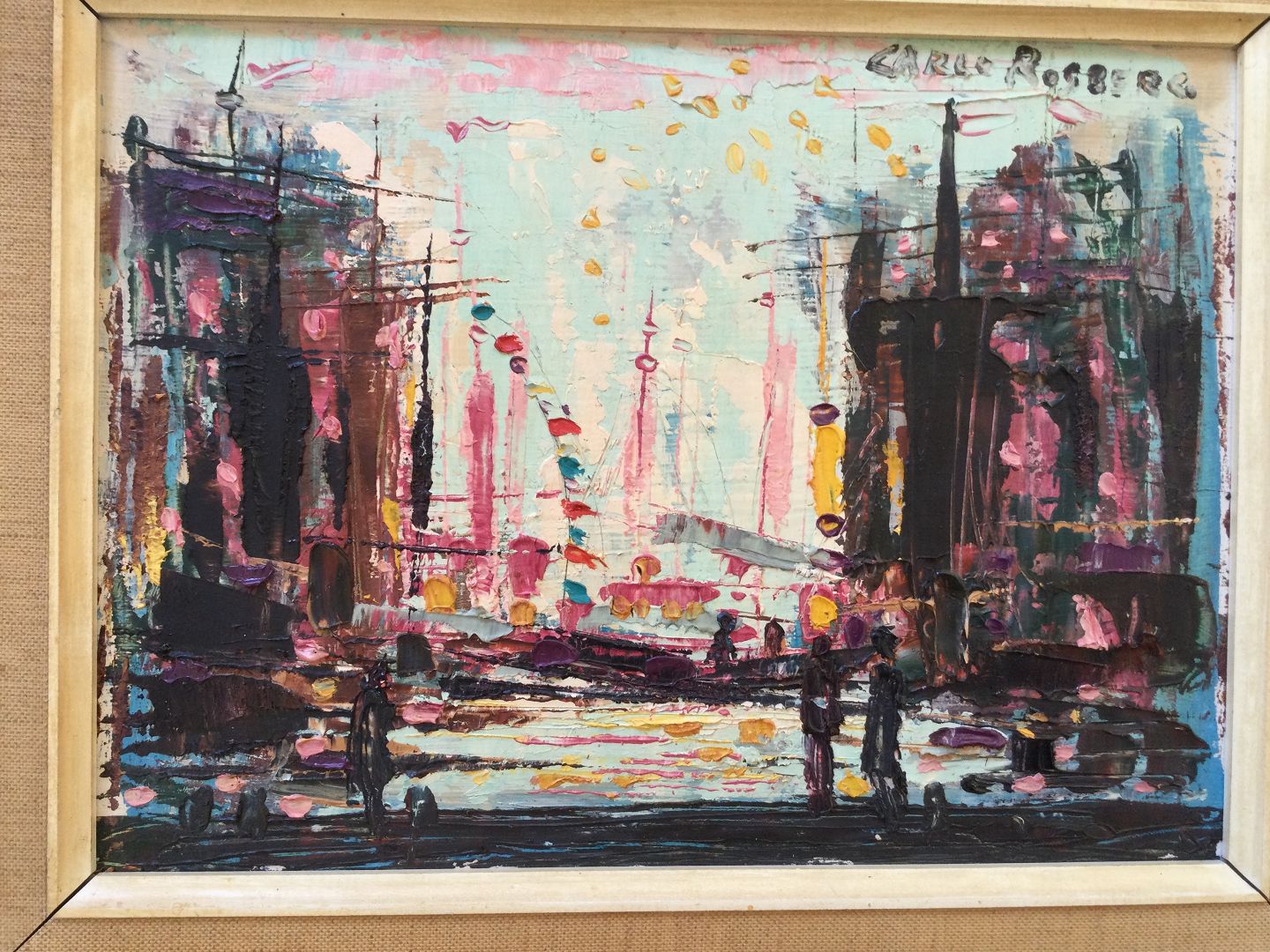 Maleri af Carlo Rosberg - Fest på Havnen - 1973.