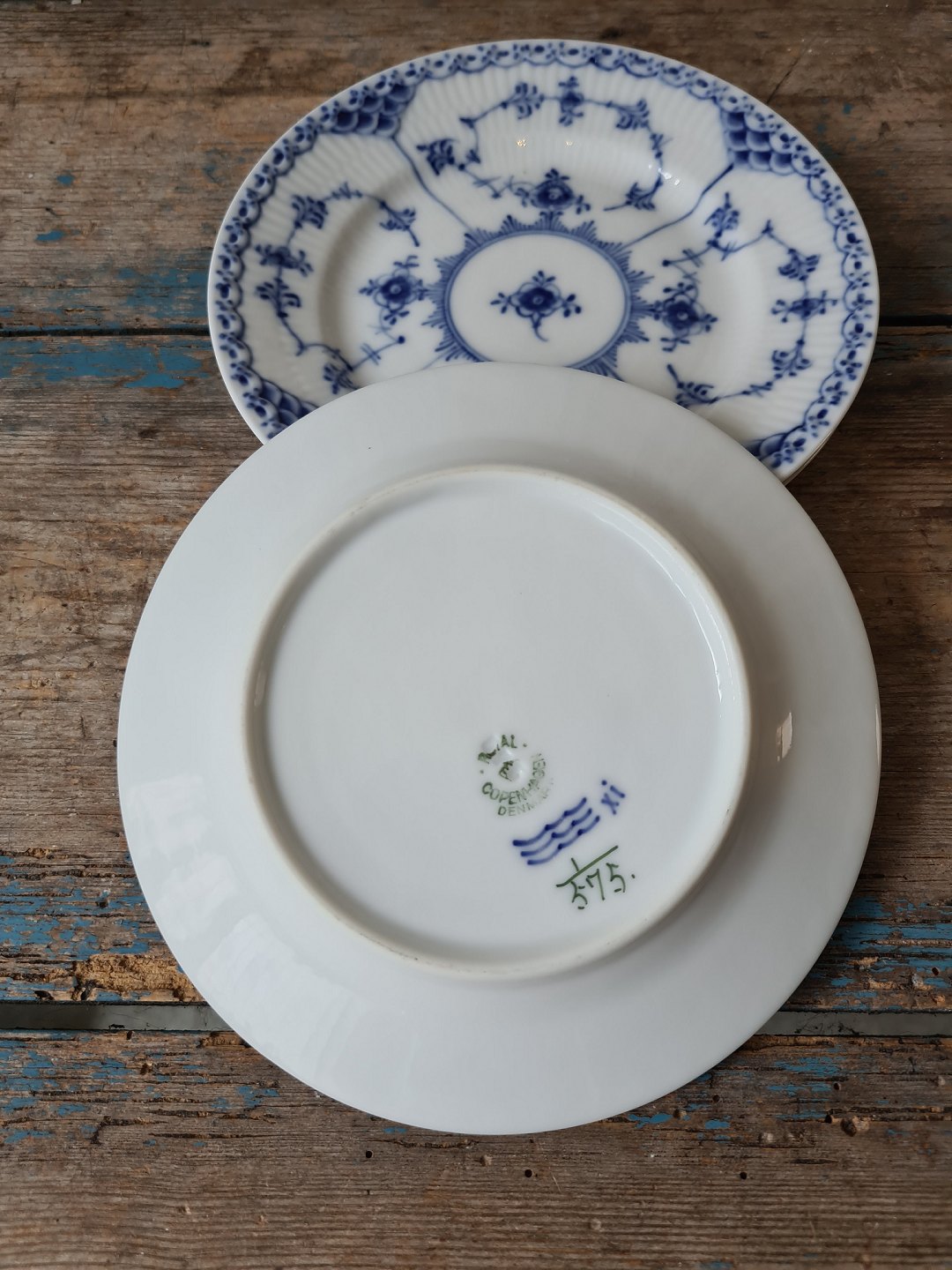 Royal Copenhagen Musselmalet halvblonde kagetallerken no. 575 - 15,5 cm.