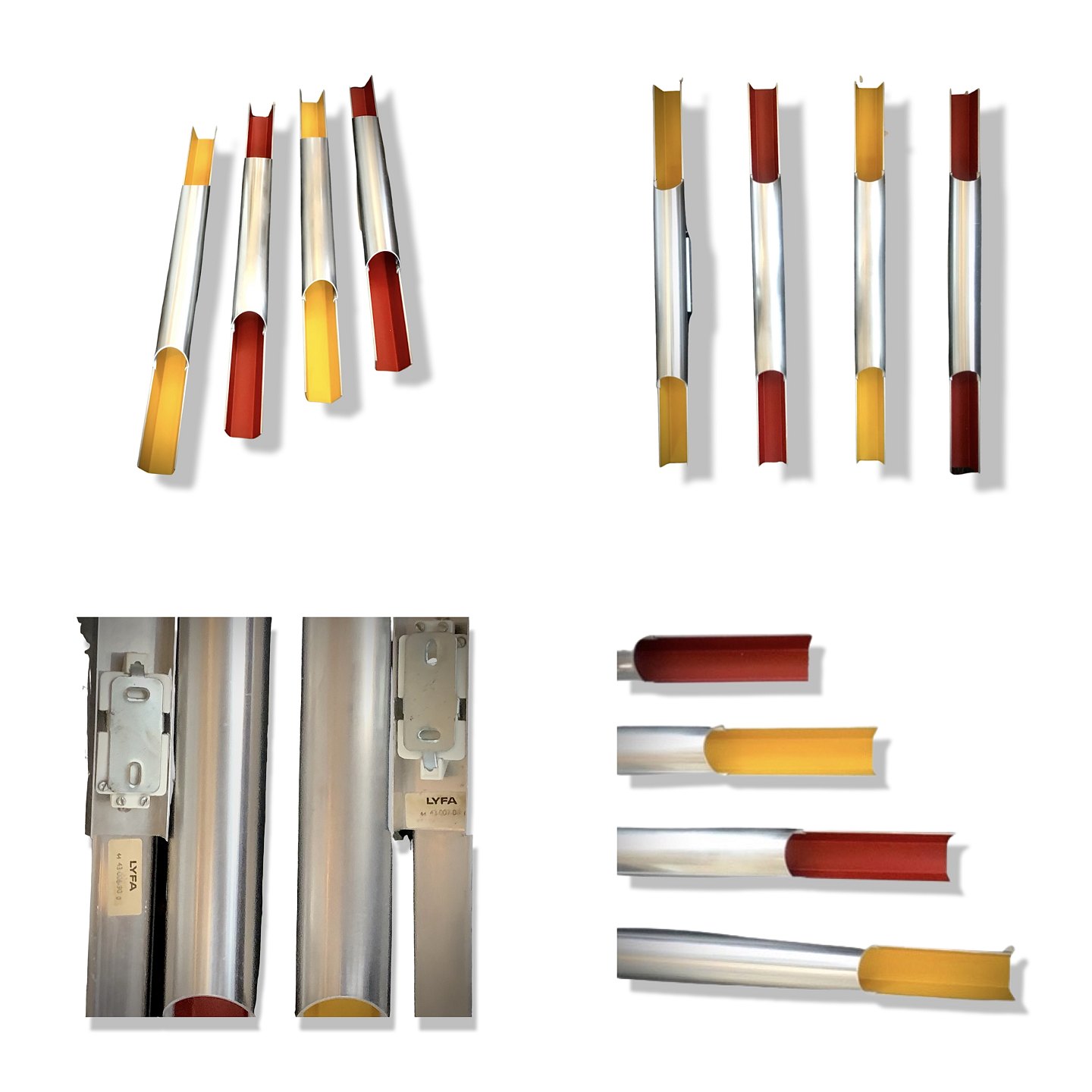 Bent Karlby / Lyfa: Pair of Pan-opticon wall lamps made of aluminum. 2 red ( Yellowstones are sold).Wall fittingsincluded. L. 60 cm. Very good vintage condition, with some traces of wear.