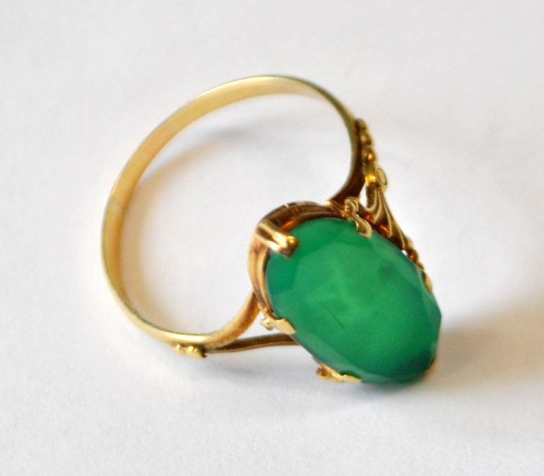 14 karat rødgulds ring med grøn tourmalin, 20. årh. Danmark.