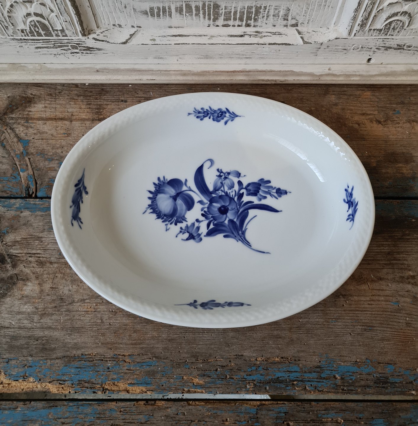 Royal Copenhagen Blå Blomst Flettet sjældent ovalt fad med ombukket kant