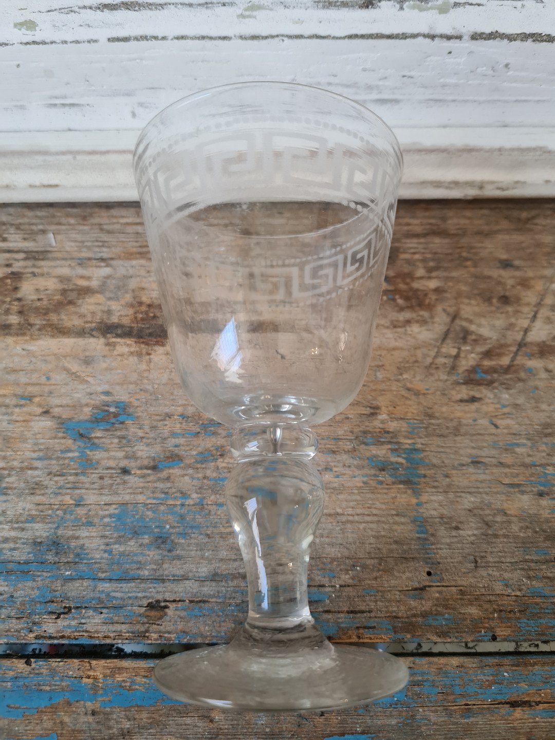 Antikt vinglas dekoreret med græsk evighedsmønster