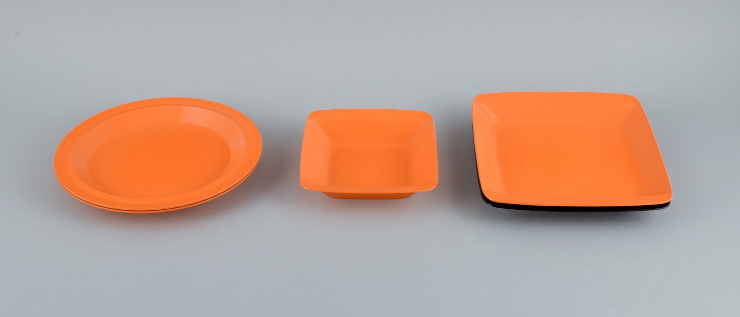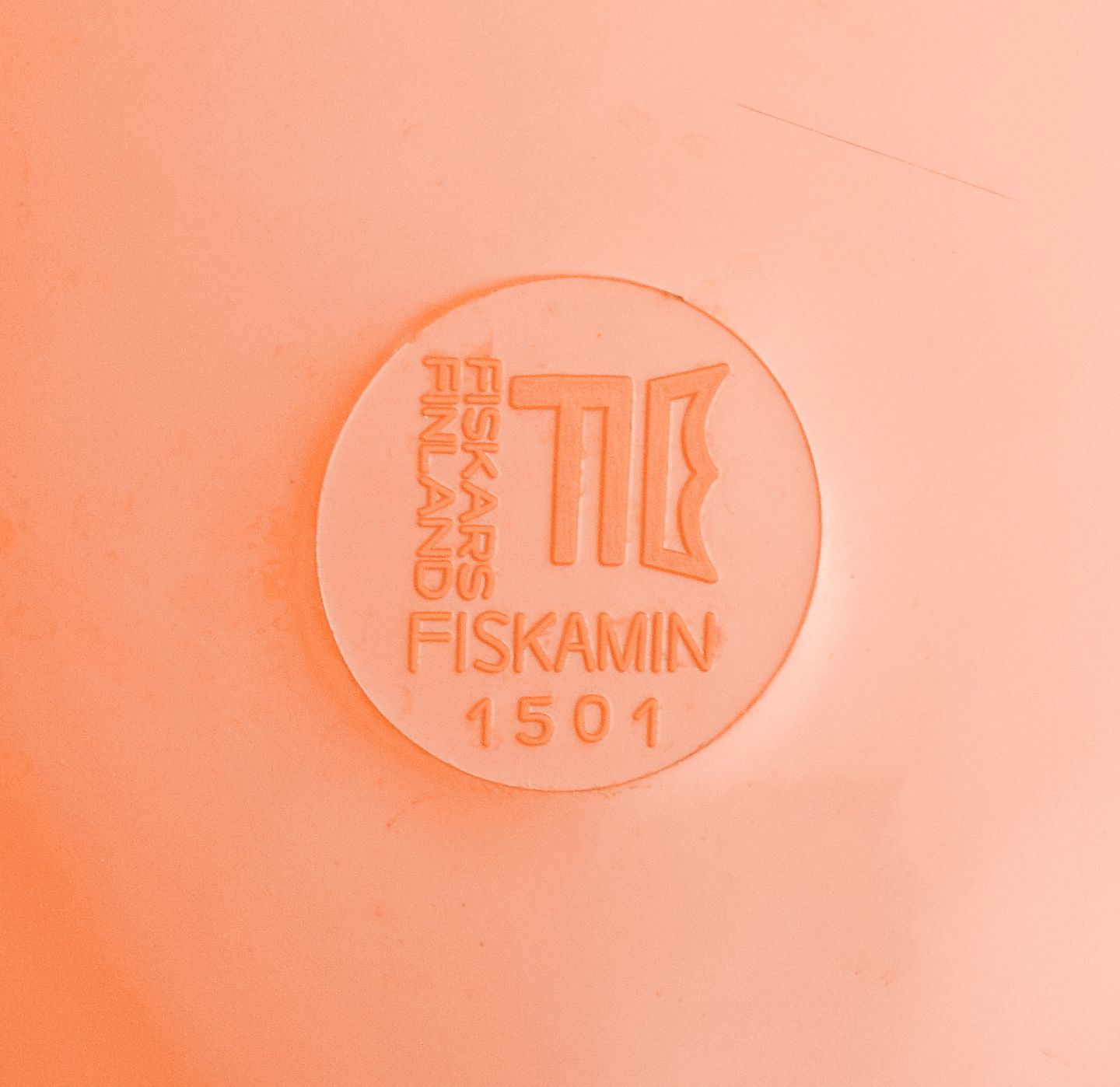 Fiskars, Finland. Fiskamin. Fem dele i orange (4) og brun (1) melamin.