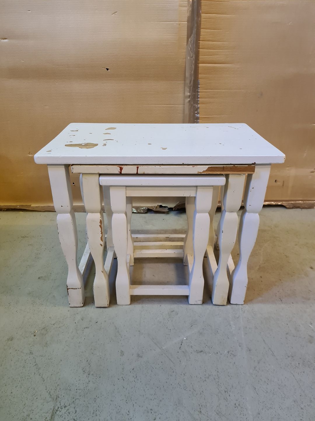 3 stk. indskudsborde i malet massivt egetræ, fra 1980erne.