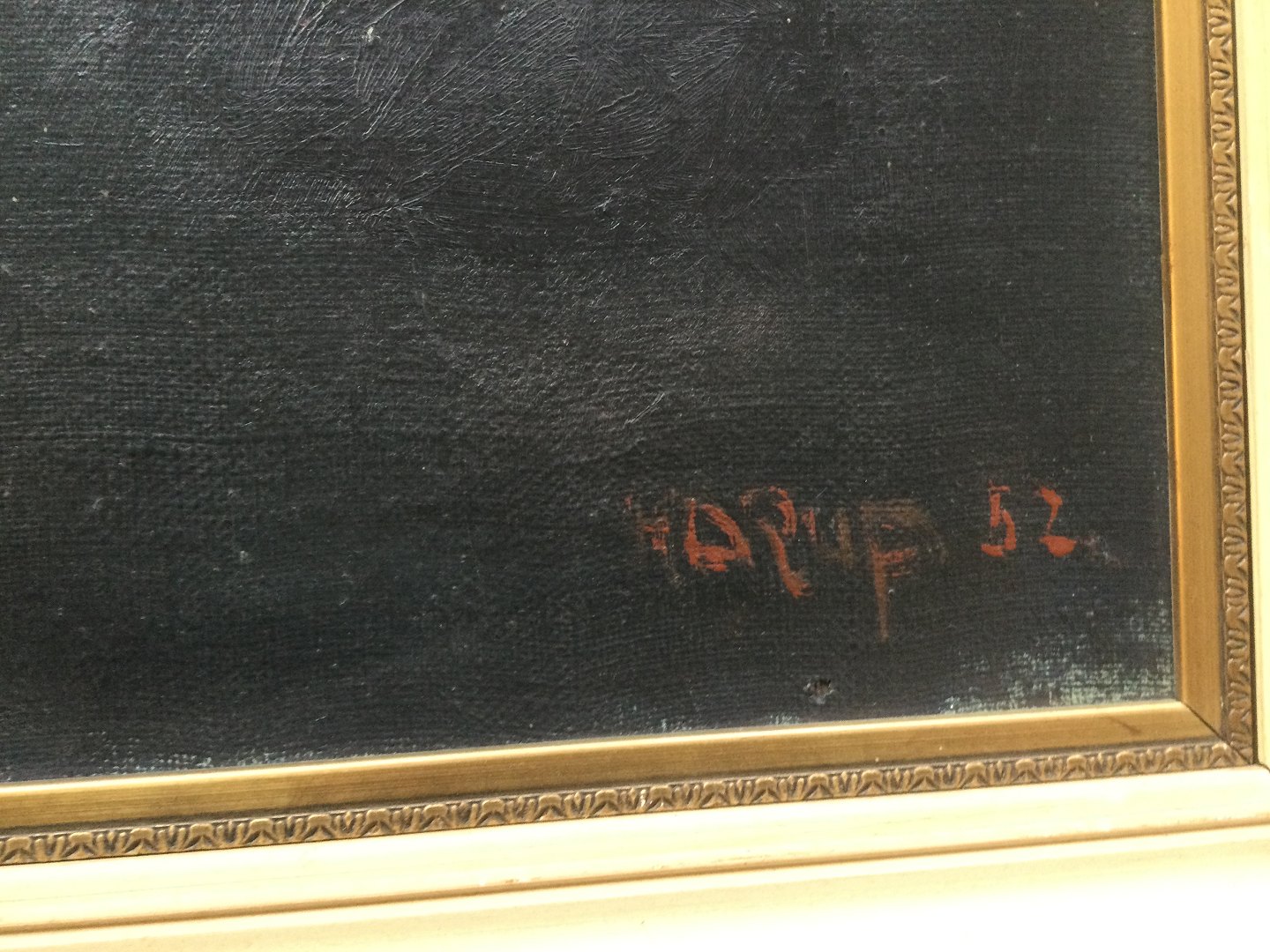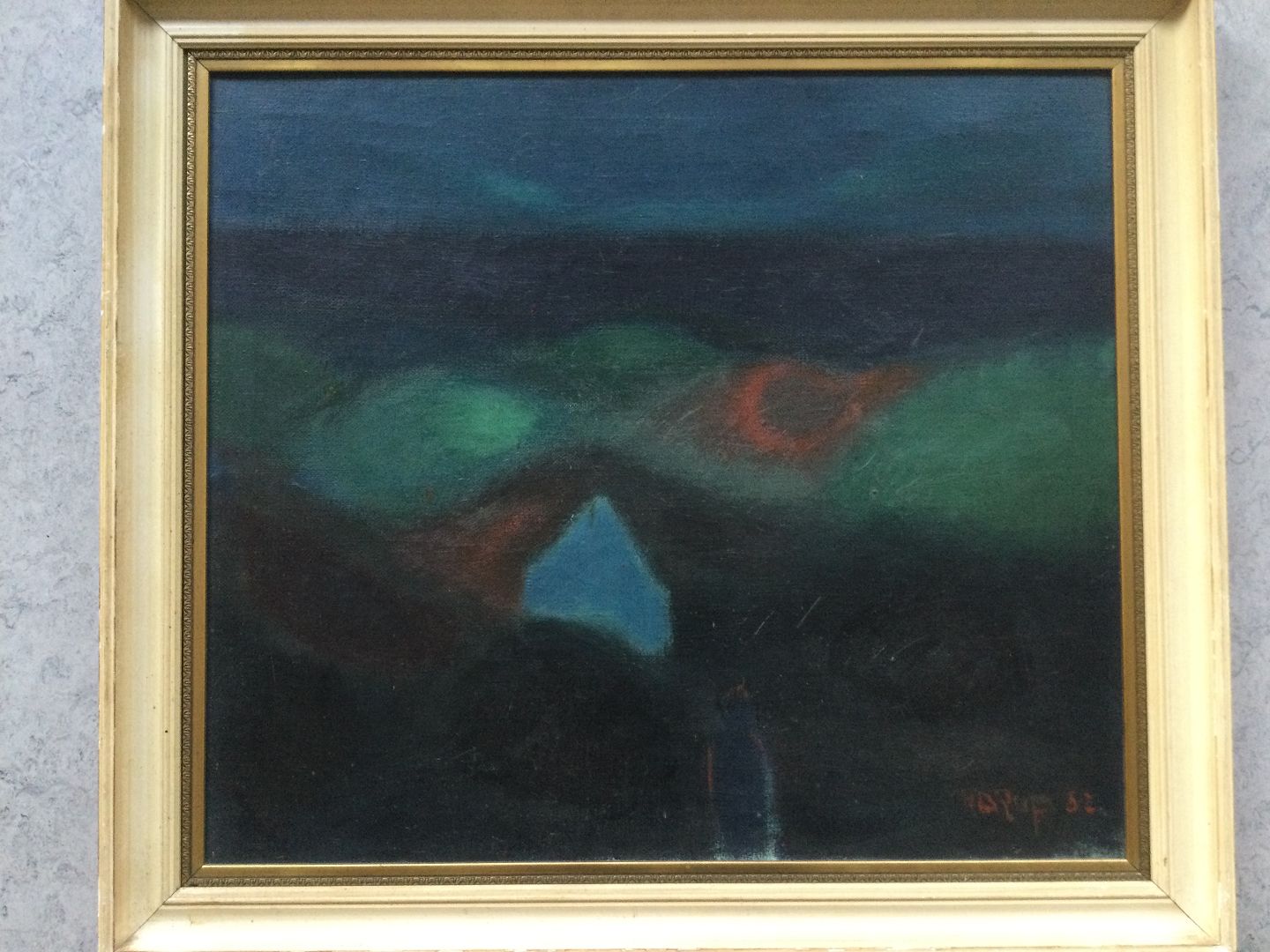 Maleri af Knud Horup - Person i mørkt landskab 1952.