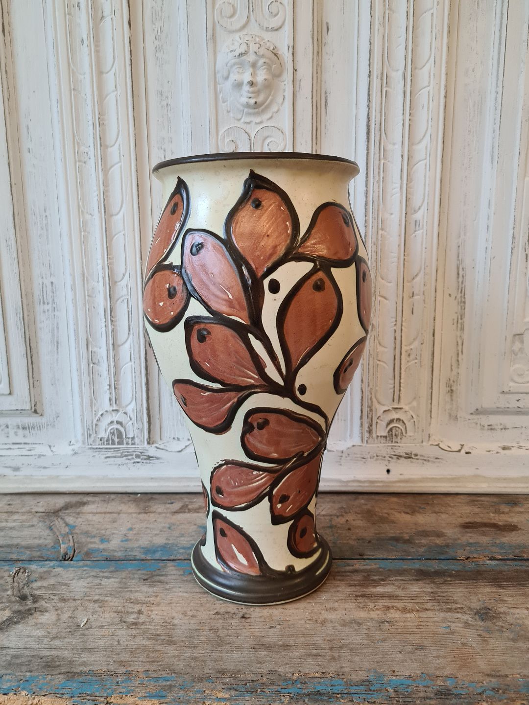 Kähler - stor kohornsbemalet vase dekoreret med blade