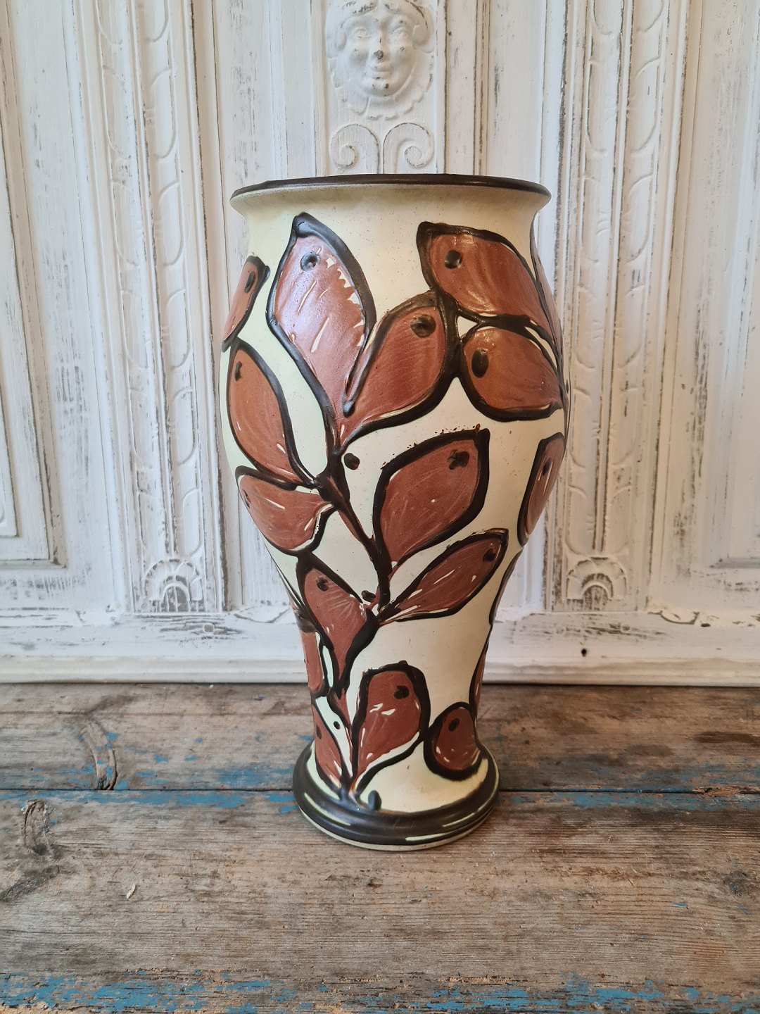 Kähler - stor kohornsbemalet vase dekoreret med blade 37,5 cm. |