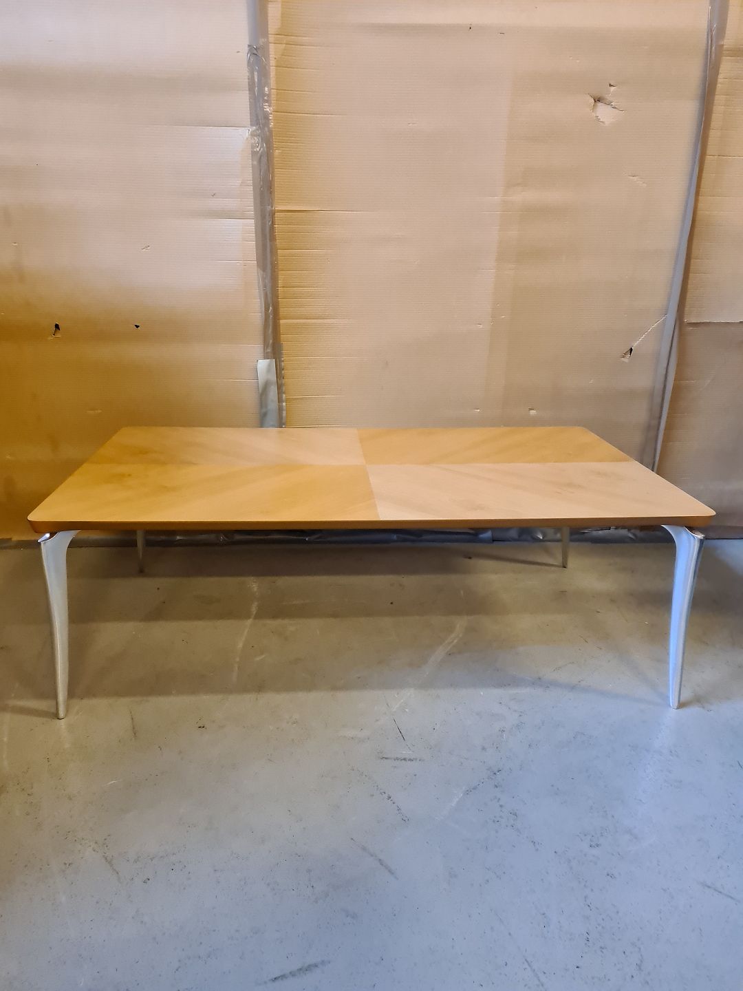 Sofabord i fineret egetræ med metalben, fra 2000erne.